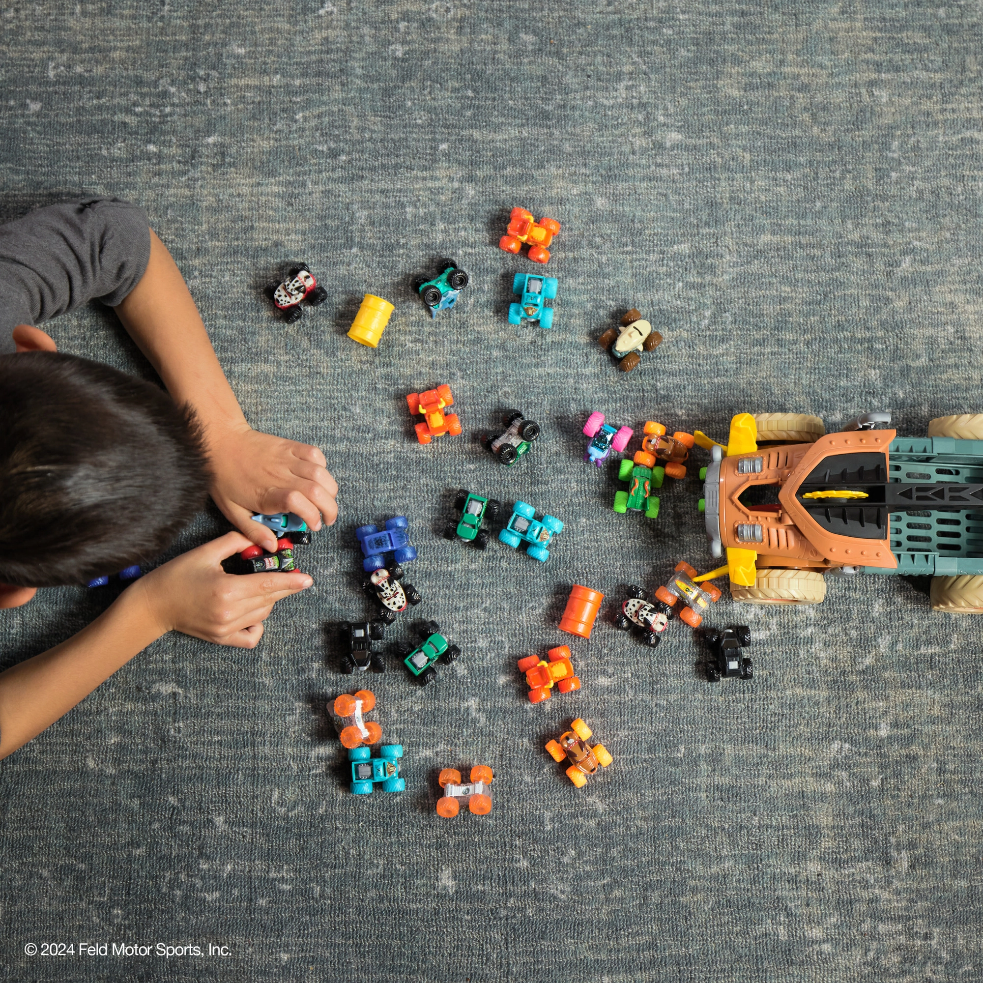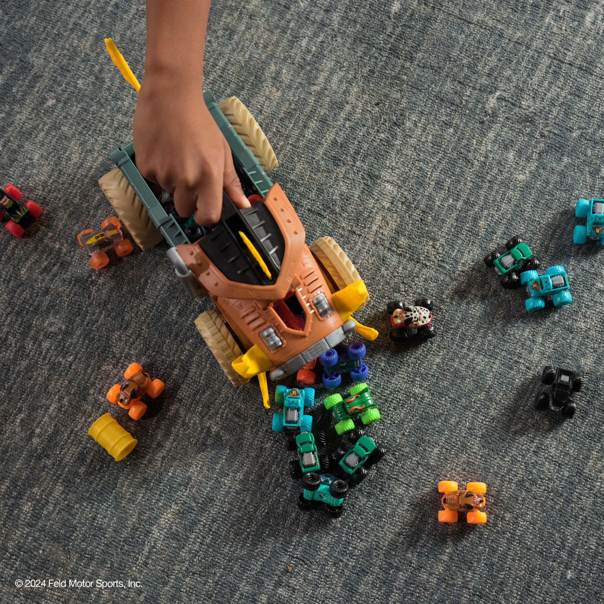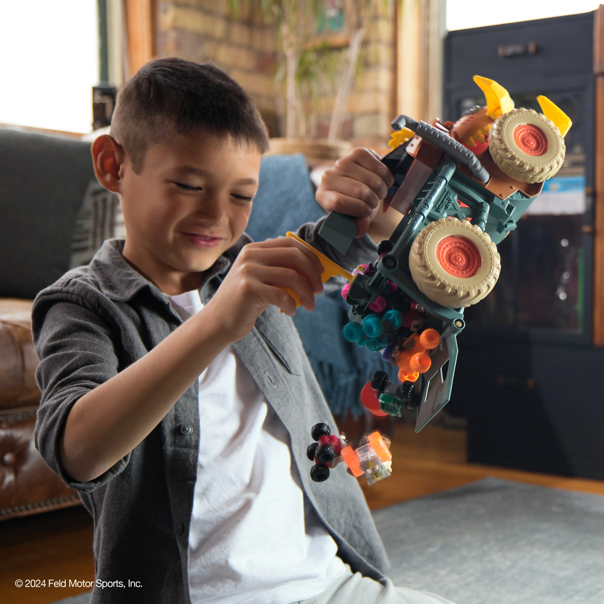Veliki Mad Hog Chomper s otvarajućim „ustima” i robusnim kotačima može skupljati mini Megalodon kamion i dodatke. Djeca će uživati u akcijskoj igri u kojoj mogu vozila sakupljati, prevoziti i skladištiti izravno unutar Chompera – sjajan način za motivaciju na red nakon igre.