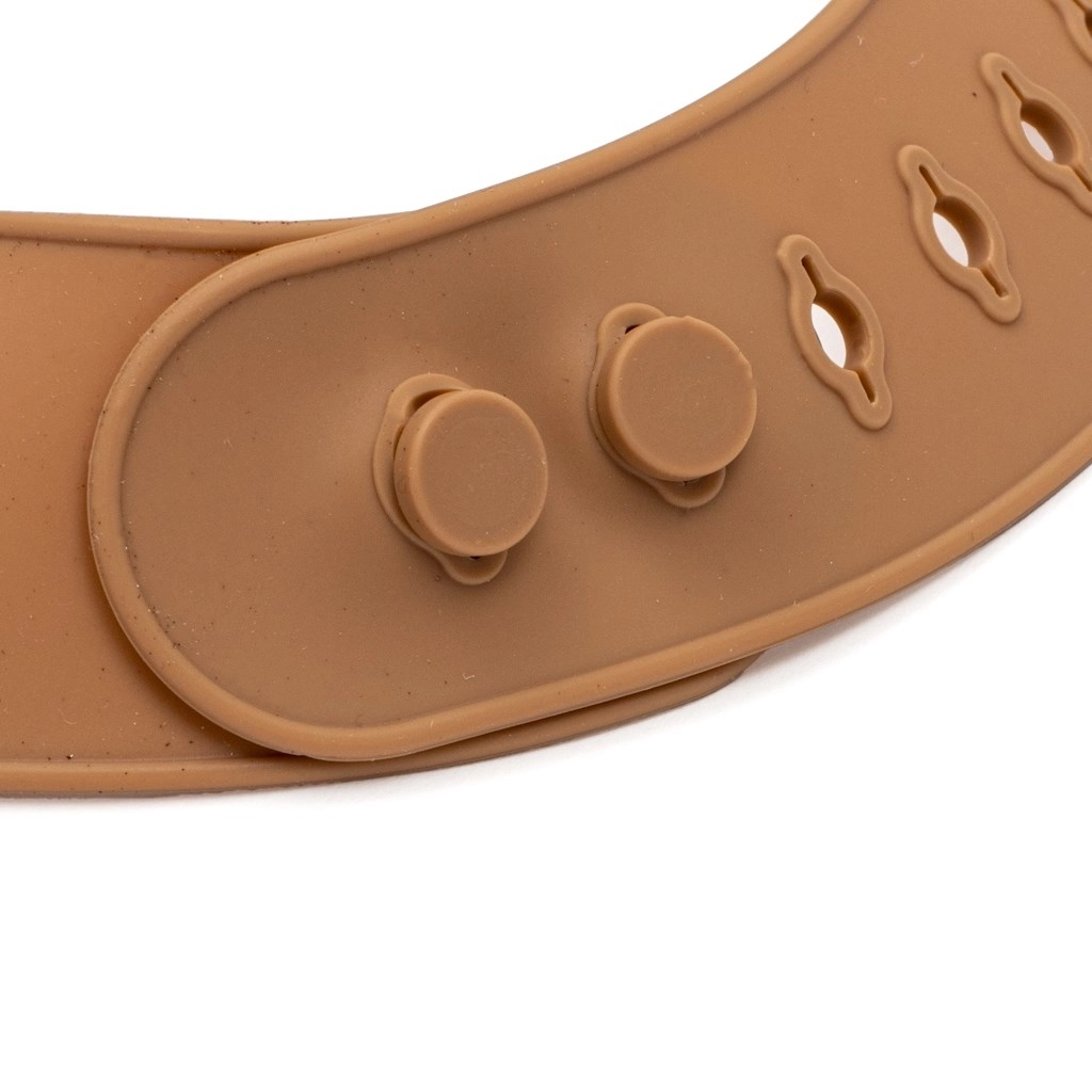Praktična silikonska podbradak NEW BABY u smeđoj boji štiti odjeću tijekom hranjenja zahvaljujući dubokom džepu za hvatanje mrvica i tekućina. Izrađena je od mekoga, sigurnog silikona, ima podesivo kopčanje za udobno nošenje, lako se čisti te je izdržljiva i fleksibilna za svakodnevnu upotrebu.