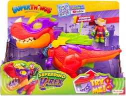 V‑Rex Superdino je saveznik zlikovaca iz svijeta SUPERTHINGS i odličan izbor za male ljubitelje akcije i kolekcionare. Zahvaljujući multizglobnoj konstrukciji lako ćete postaviti dinamične poze, dok svjetla i rik daju borbama pravu atmosferu.
