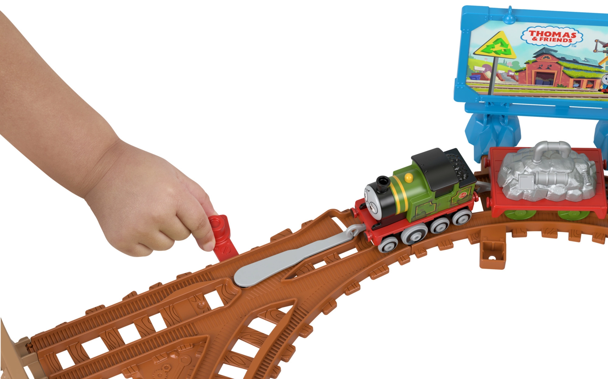 Set je osmišljen za lako kombiniranje s ostalim plastičnim prugama Thomas & Friends (nekompatibilno s drvenom serijom). Čvrsti plastični dijelovi, praktične plastične spojnice i izražajne boje jamče izdržljivost i privlačan izgled u dječjoj sobi.