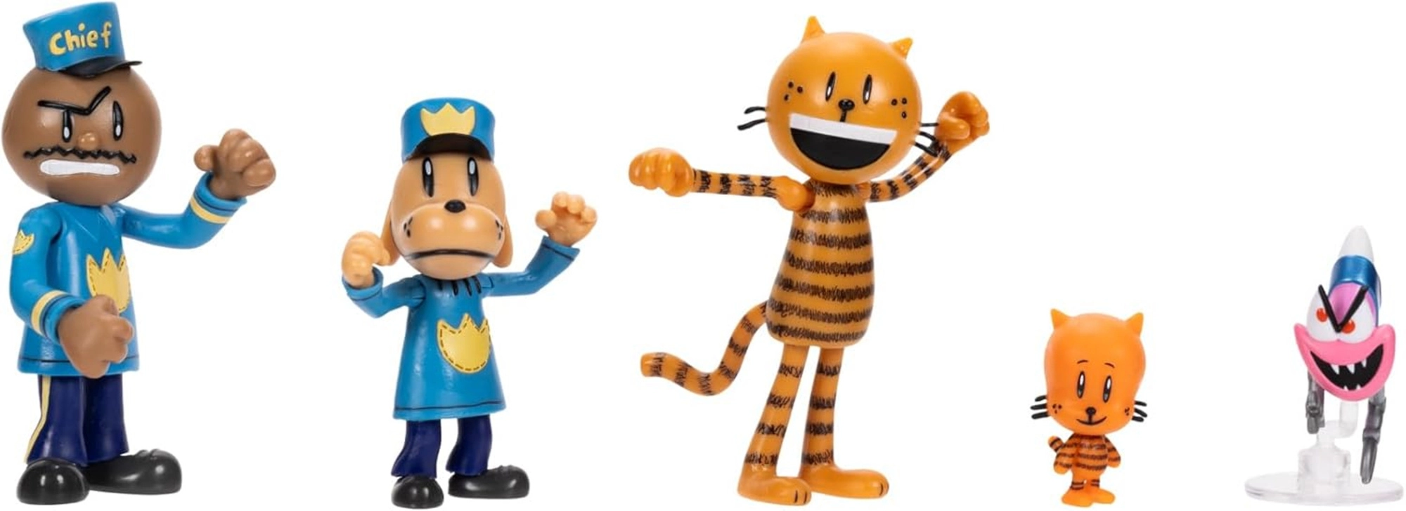 Set sadrži pet ikoničnih likova: Chief, Dog Man, Petey, Lil’ Petey i Flippy. Zahvaljujući kombinaciji junaka i zlikovca djeca lako stvaraju napete scene i razvijaju maštu i pripovijedanje.