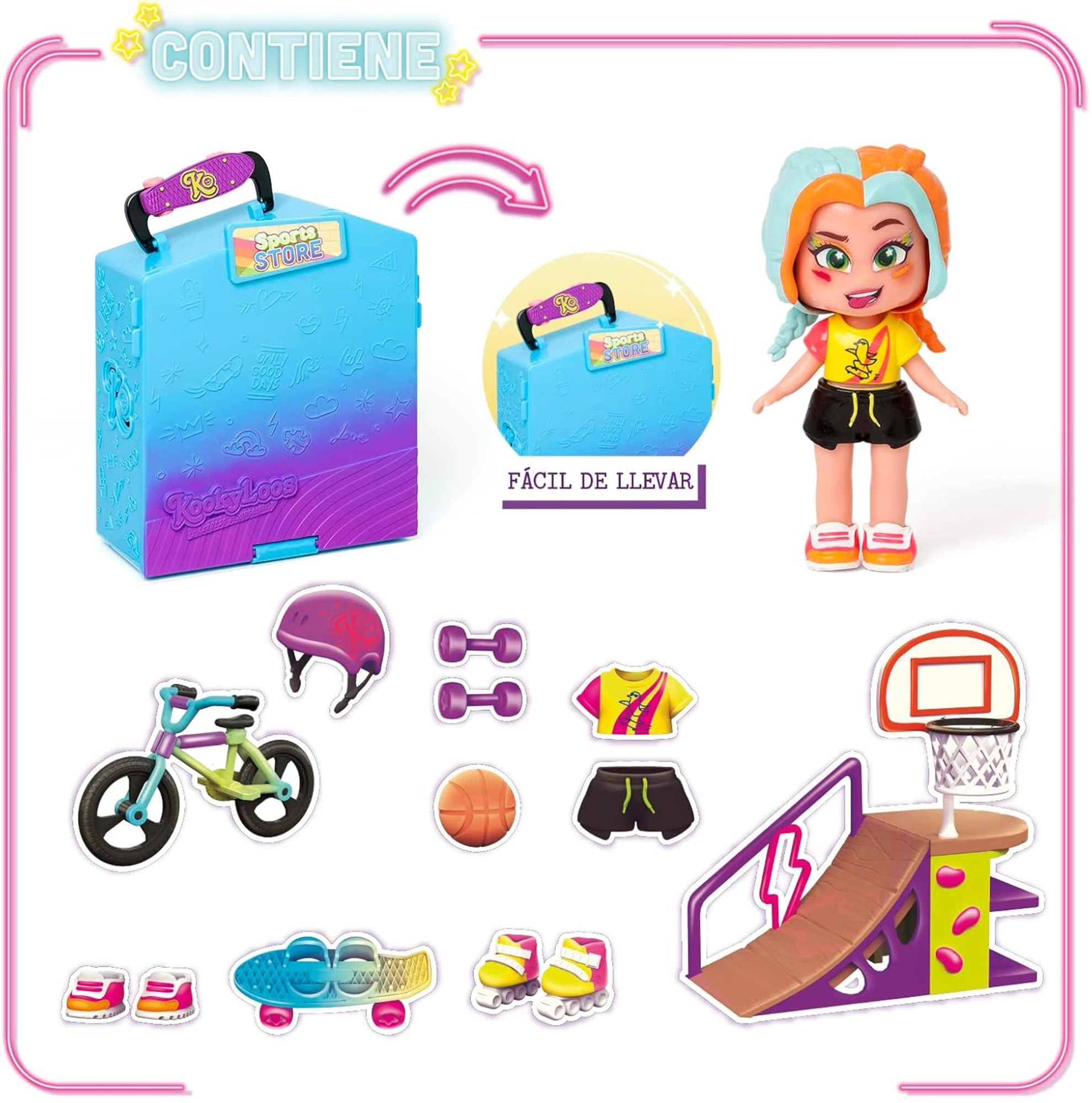 Figurica KookyLoos brenda Magic Box donosi zabavu, stil i izražajnu osobnost u jednom. Ekskluzivna Lizzie spremna je za sportske avanture – s pokretnim zglobovima, mehanizmom za promjenu izraza i sjajnim dodacima djeca stvaraju vlastite priče pune akcije i mašte. Otvarajući kovčeg pretvara se u mini sportsku trgovinu s biciklima, rolama i skateboardom.