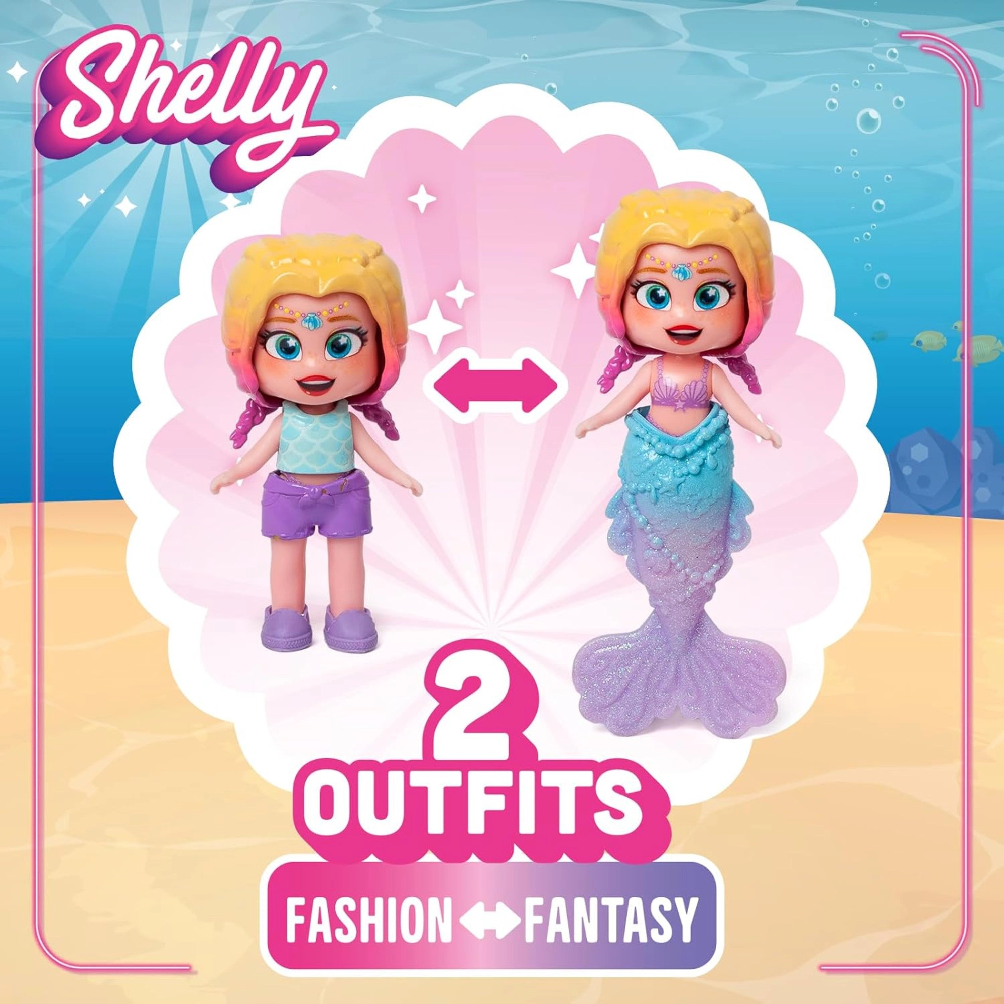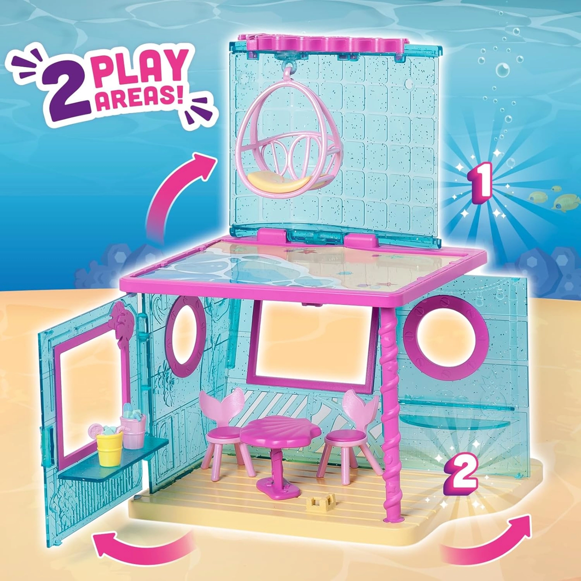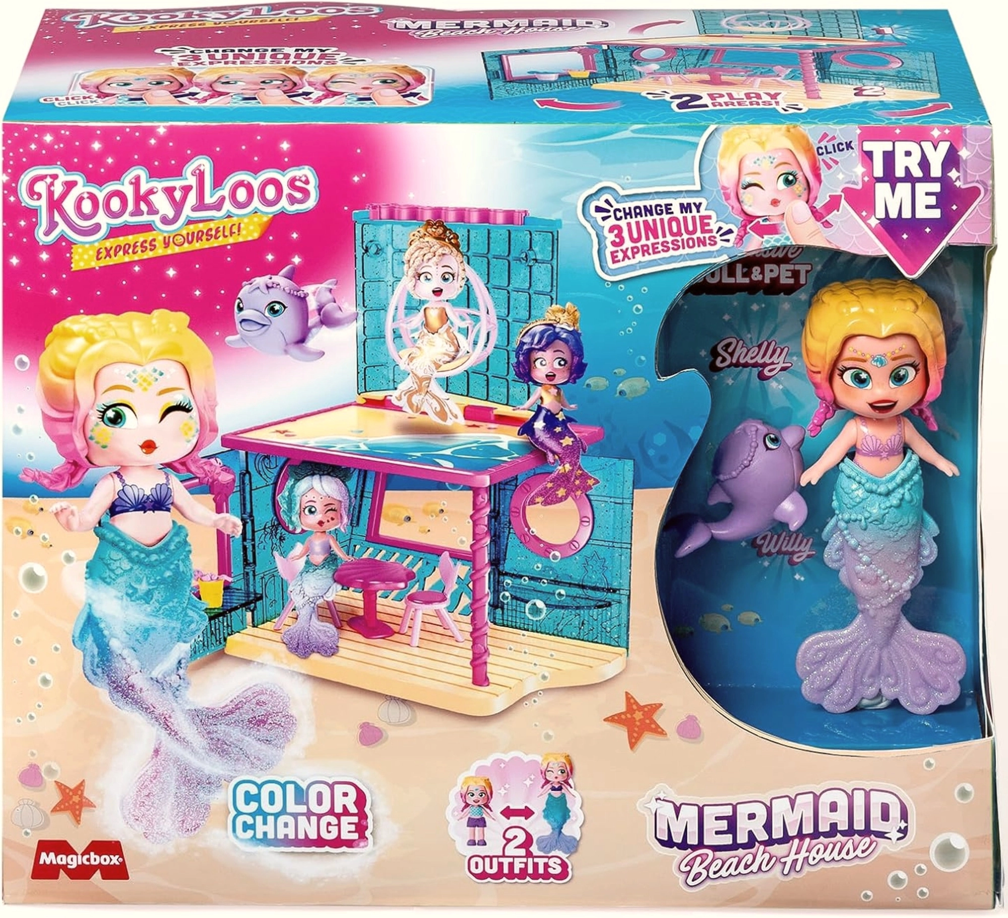 Uđite u podmorski svijet s KookyLoos MERMAID – slatkom sirenom Shelly, koja ima pokretne zglobove, 3 izraza lica i efektan svjetlucavi rep. Otvorite plažnu kućicu za sirene, ukrasite je po svom i uživajte u beskrajnim pričama s vjernim prijateljem – delfinom.