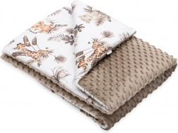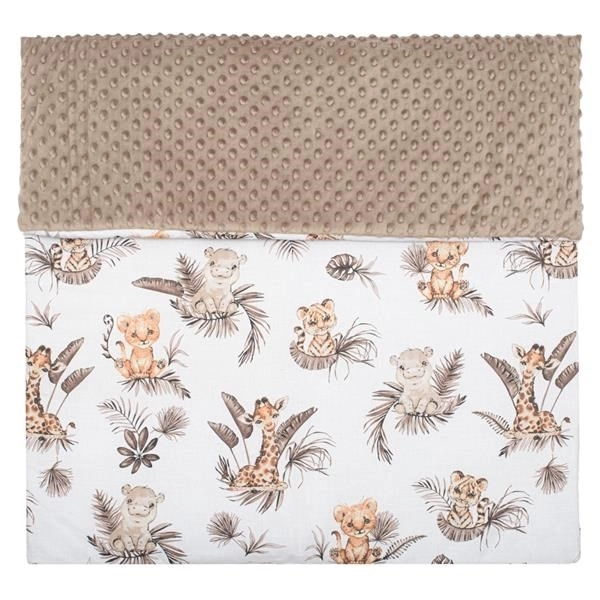 Meka i topla dječja deka s motivom Safari kombinira nježnu tkaninu minky i kvalitetan 100% pamuk s edukativnim uzorcima. Zahvaljujući antialergijskom punjenju odlično zadržava toplinu, prikladna je od rođenja i idealna za krevetić, kolica i autosjedalicu. Materijal ne otpušta boje i ne iritira osjetljivu kožu.