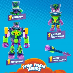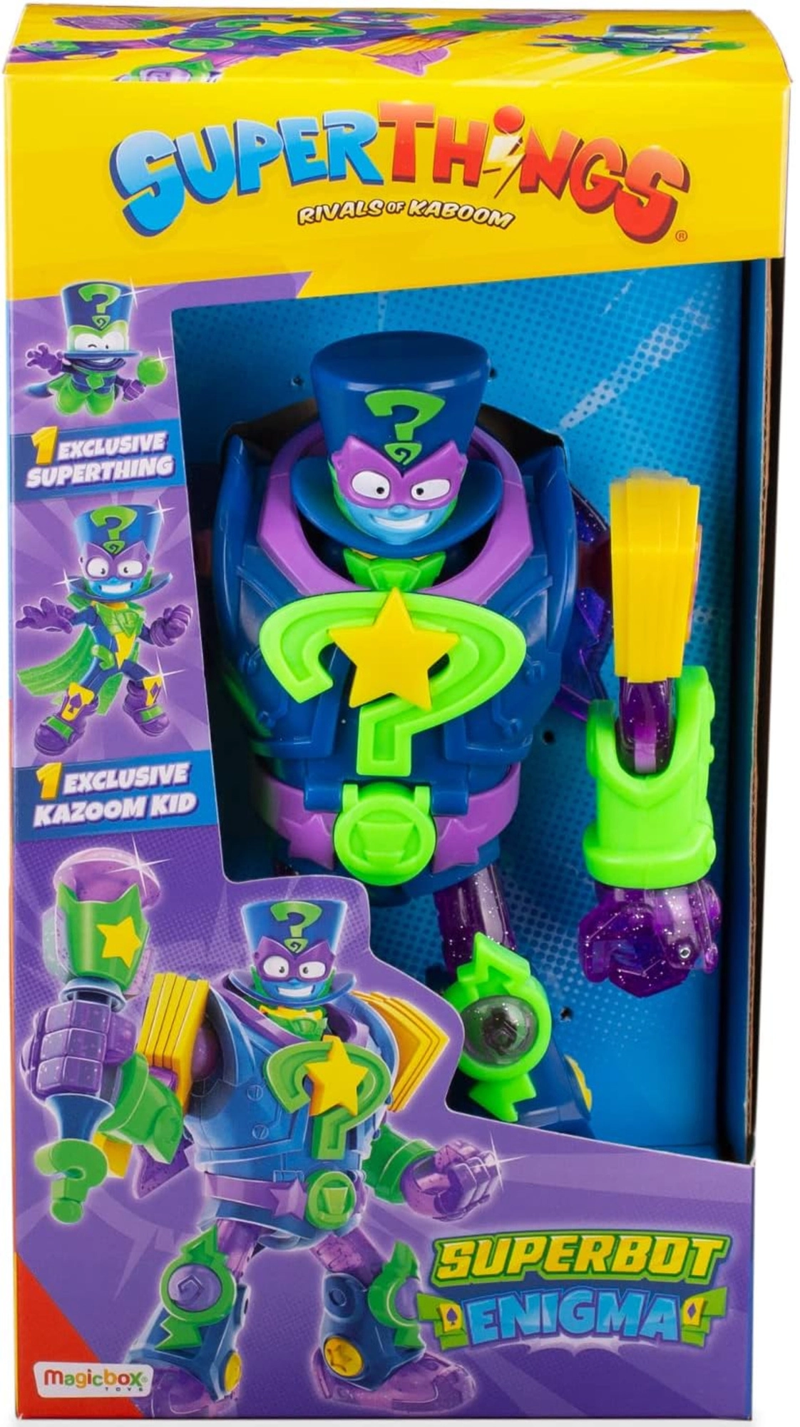 SuperThings Enigma Superbot donosi spoj izražajnog dizajna, funkcionalnih mehanizama i napetih mogućnosti igre. Zahvaljujući pokretnim rukama i nogama robota je lako pozirati i stvarati akcijske scene. Pritiskom na gumb otvaraju se mehanička krila za dramatične bijegove i letove iznad Kaboom Cityja.
