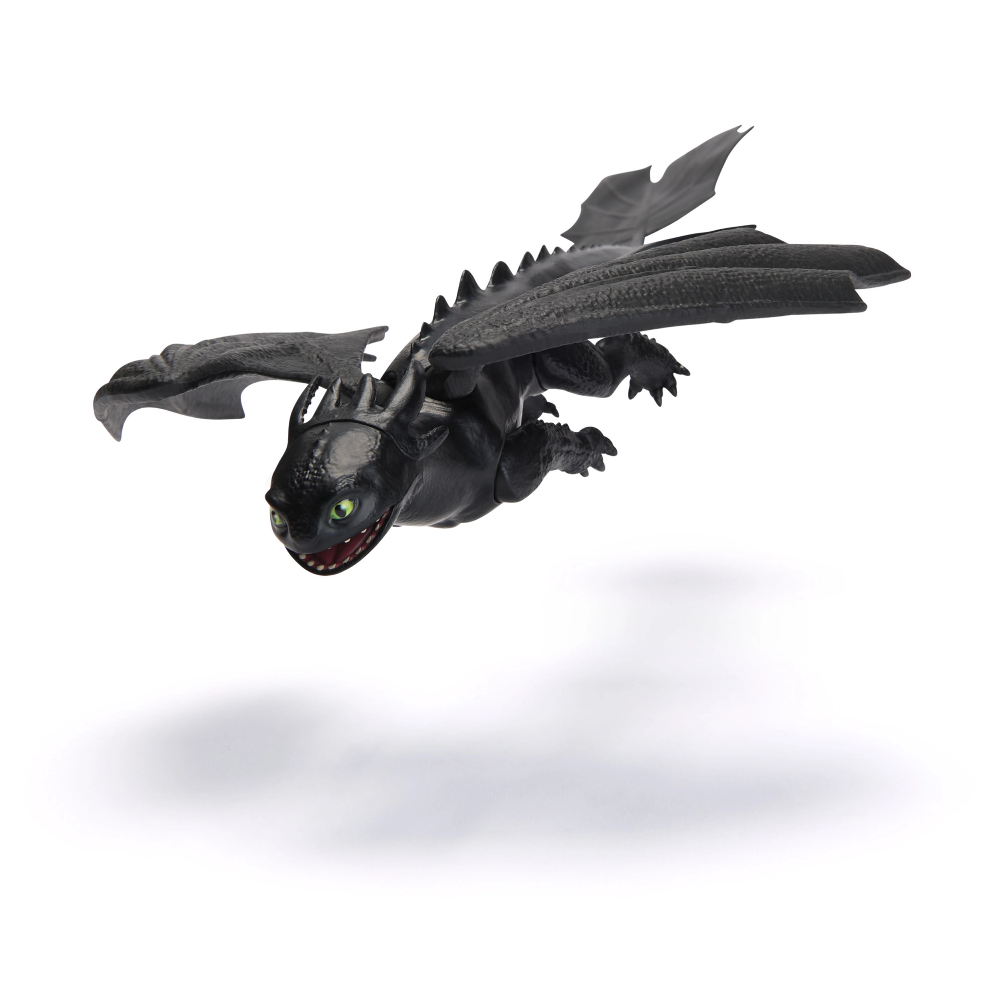 Otkrijte kultnog zmaja TOOTHLESS iz omiljene serije Kako izdresirati zmaja. Figurica u crnoj izvedbi ističe se detaljnim teksturama ljuski, izražajnim zelenim očima i širokim krilima. Sjajna je za kreativnu igru, pripovijedanje priča i kao kolekcionarski komad.