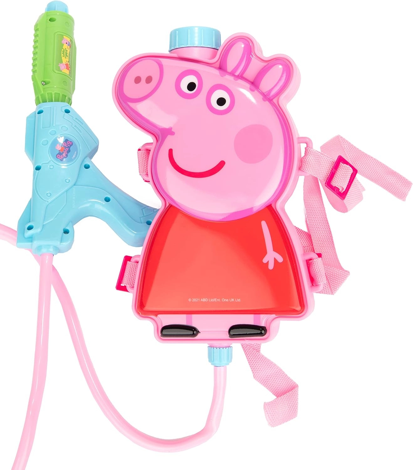 Uživajte u osvježavajućim igrama na otvorenom s vodenim ruksakom PRASE PEPPA. Dječji ruksak-stupić u obliku omiljenog lika jamči puno veselja i sigurne vodene „pucnjave”. Ručna štrcaljka radi na principu pumpe, tako da djeca mogu precizno ciljati i dozirati mlaz vode.