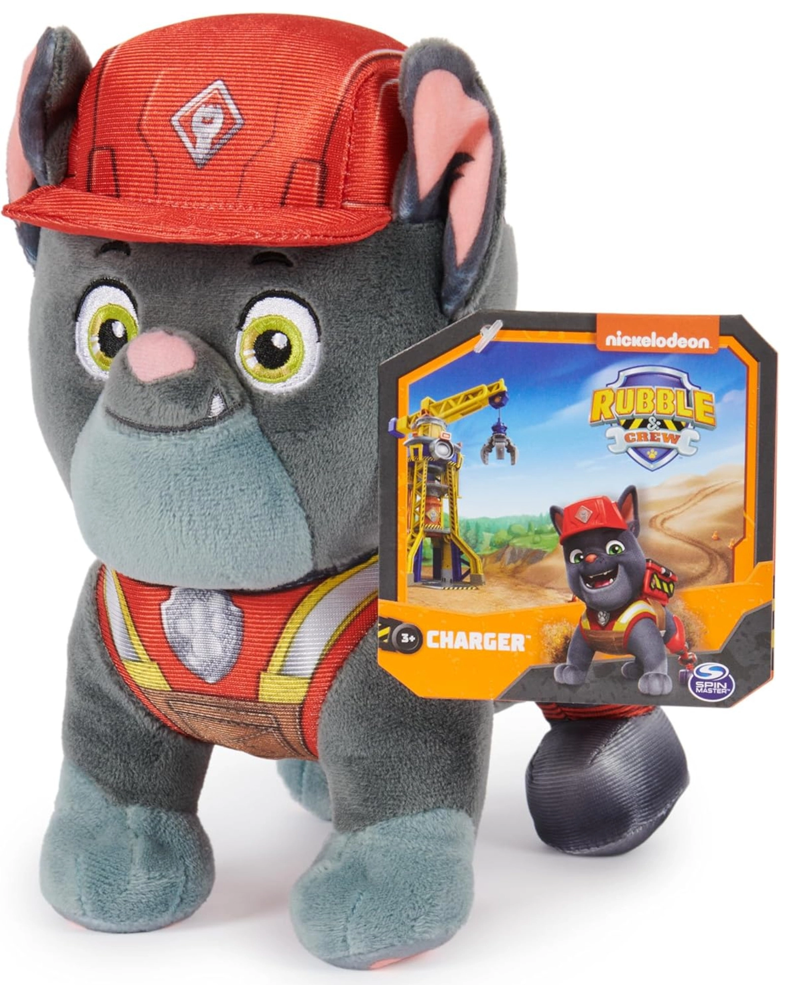 Plišani Charger je energični francuski buldog iz serije PAW Patrol: Rubble & Crew, gdje pomaže u prijevozu teških tereta. Ova kvalitetno izrađena igračka tvrtke Spin Master vjerno prikazuje njegov izgled – od crvene kacige i prsluka s reflektirajućim elementima do mekane sivo-srebrne dlake i velikih vezenih očiju.