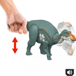 Figurica tvrtke Mattel vjerno prikazuje Maiasauru s realističnom teksturom kože, izražajnim bojama i detaljnom izradom. Zahvaljujući pokretnim zglobovima na nogama, vratu i repu lako ćete namjestiti dinamične poze od mirnog hoda do napada. Upravljanje repom aktivira karakterističan udar čeljusti i riku, što pojačava realistične scene igre.