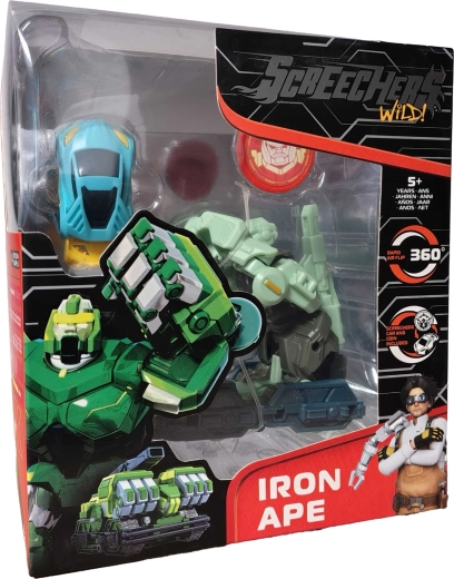Uskliči u akciju s setom Screechers Wild! – transformirajućom figuricom IRON APE, koja se u trenu pretvara iz majmuna u brz zeleni automobil. Zahvaljujući pokretnim dijelovima, upadljivom dizajnu i priloženoj energetskoj medalji, djecu od 5 godina očekuje mnoštvo dinamičnih dvoboja i zabave.