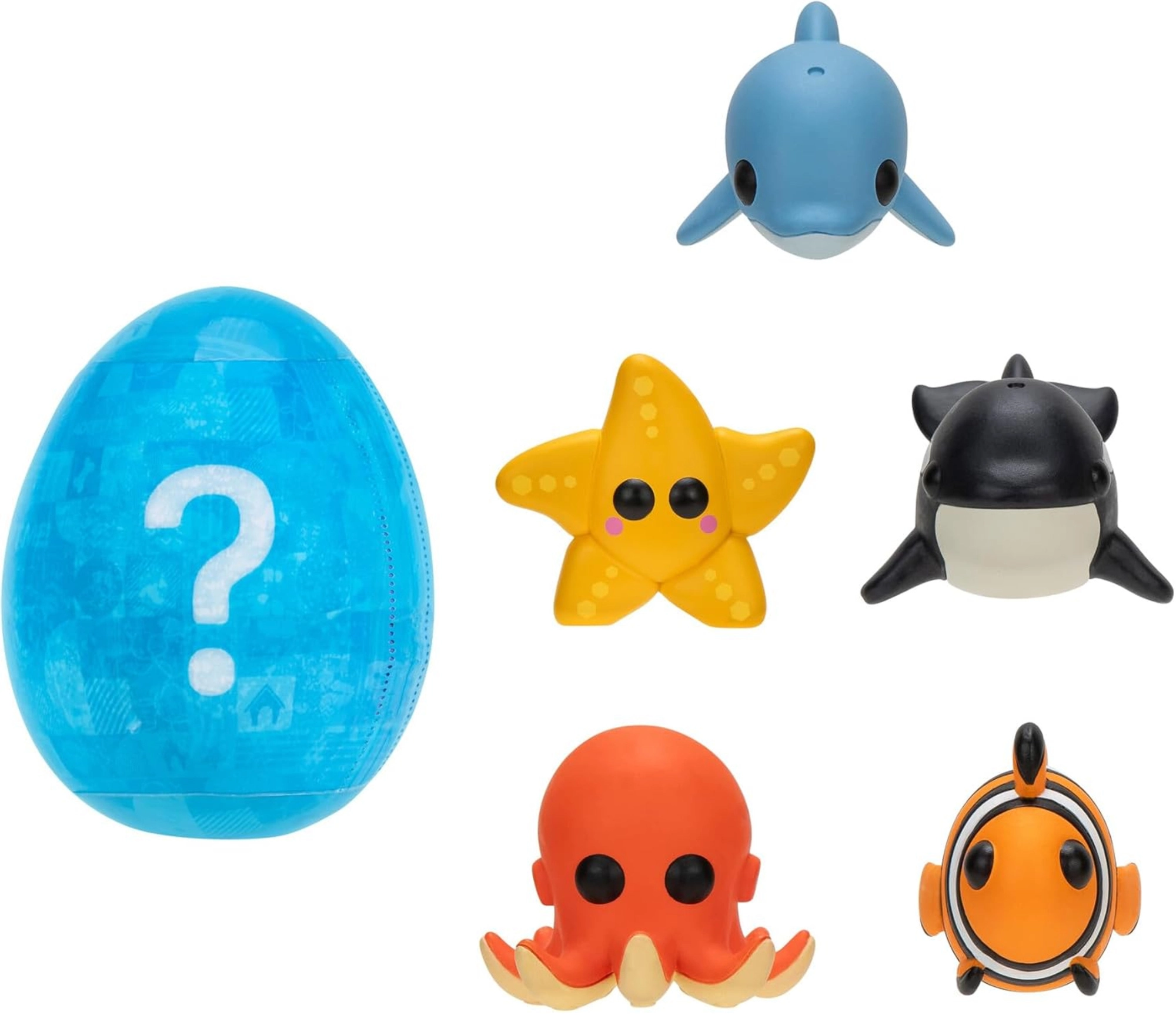 Uronite tematsko jaje u vodu, obrišite vanjski sloj i otkrijte tajanstvenu figuricu inspiriranu igrom ADOPT ME. Set spaja magiju raspakiravanja s kreativnom igrom – idealan poklon za djecu koja vole morske motive i kolekcionarstvo.