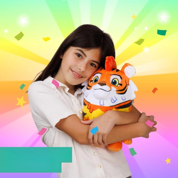 Otkrijte šareni svijet Piñata Smashlings, gdje iz duginih pinjata oživljavaju preslatka bića puna energije! Plišanac tigar Mo u intenzivnoj narančastoj boji ima nježnu teksturu, prijateljski izraz i kao stvoren je za svakodnevnu radost. Zahvaljujući ugodnom materijalu prikladan je za maženje, igru i dekoraciju dječje sobe.