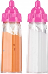 Potaknite maštu i socijalne vještine djece setom dviju bočica – jedne za mlijeko i druge za sok. Zahvaljujući praktičnim dimenzijama 10 × 3 × 3 cm odlično pristaju u male dječje ruke i kao oprema za lutke. Igra s bočicama razvija igranje uloga, njegu i komunikaciju.