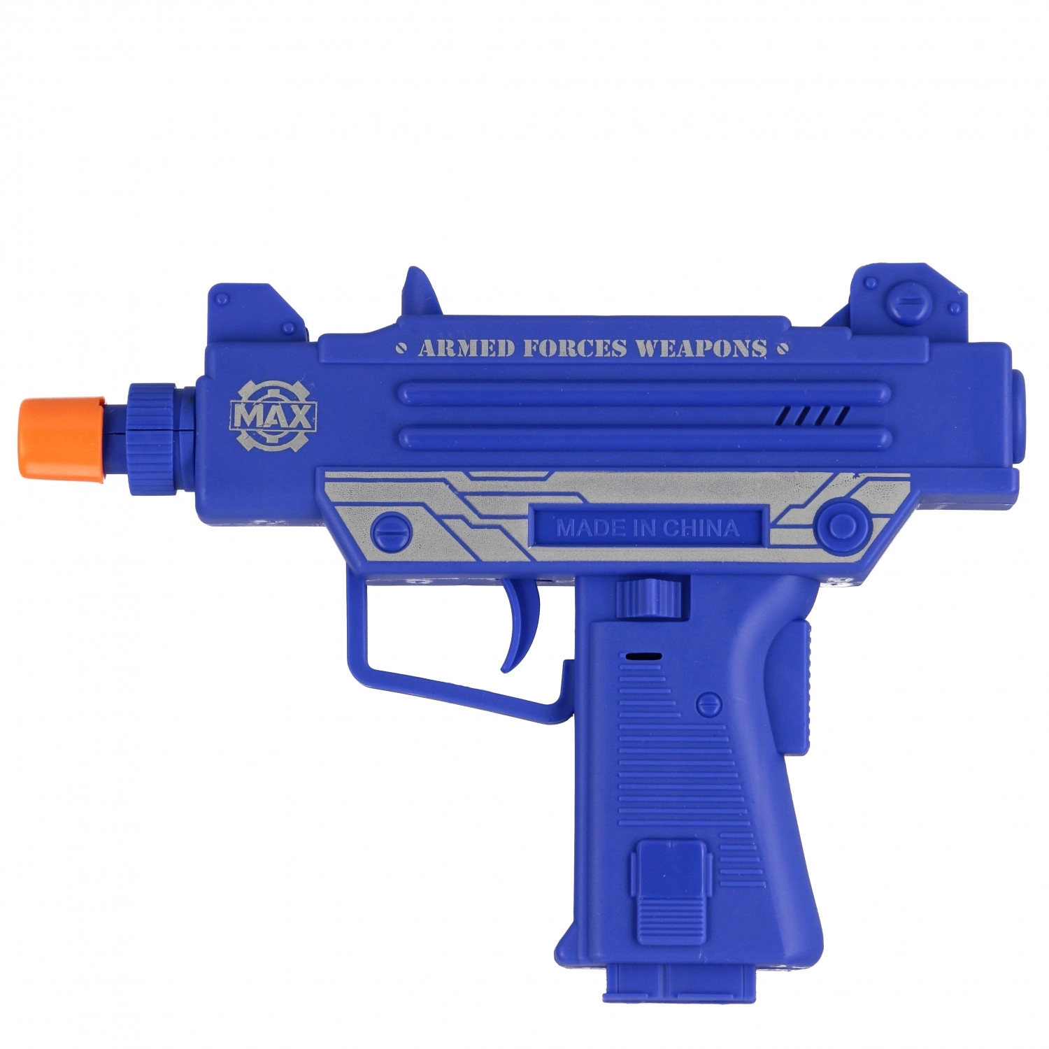 Plastično oružje s narančastim sigurnosnim vrhom i profiliranim rukohvatom dizajnirano je za udobno držanje i sigurnu dječju igru.