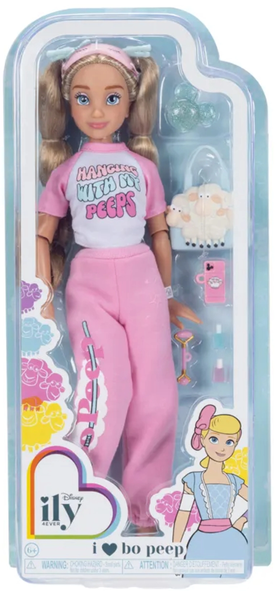 Stilska lutka Disney ILY 4Ever inspirirana likom BO PEEP donosi moderan loungewear izgled, 13 pokretnih zglobova i više od 10 tematskih dodataka za beskrajnu kreativnu igru. S dugim plavim pletenicama, praktičnom torbicom u obliku ovčice i setom za kućni SPA idealna je za djecu koja vole modu, stiliziranje i maštovite priče.