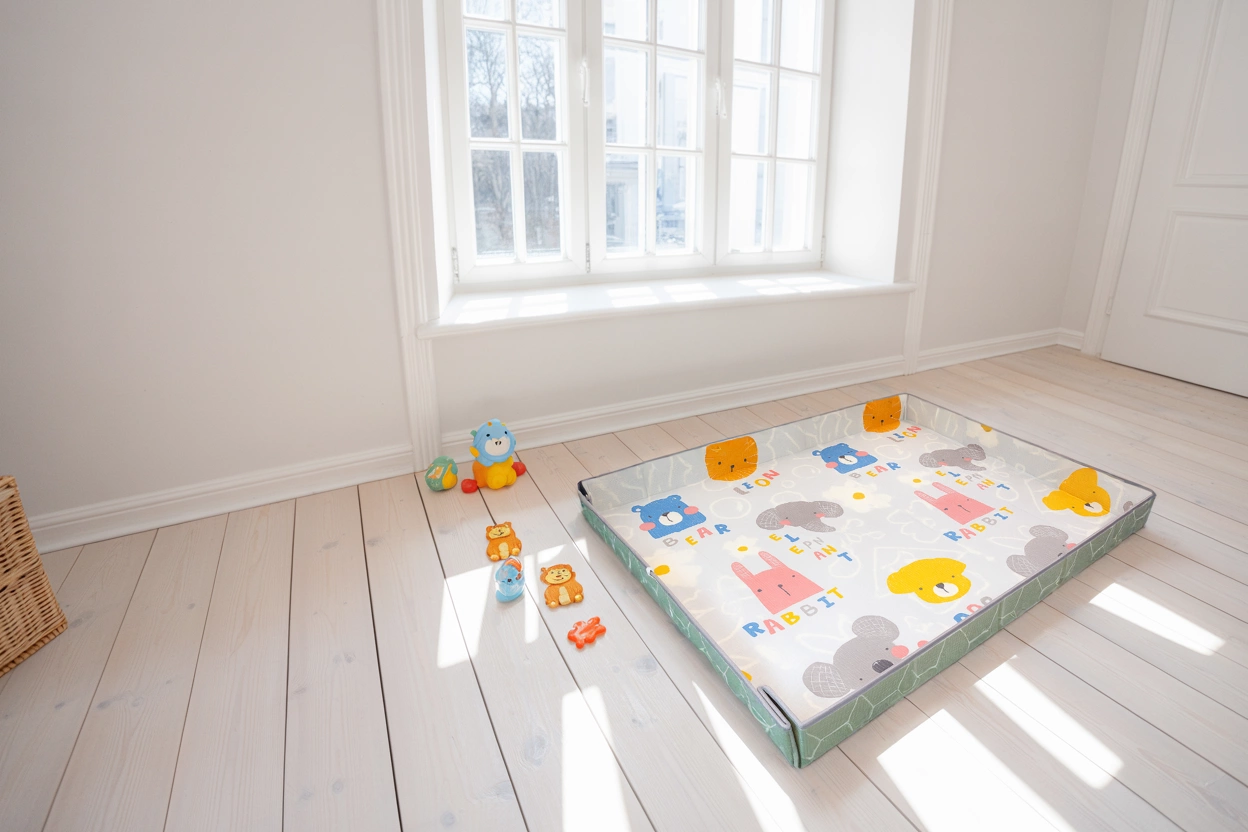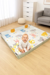 Velika i mekana pjenasta podloga od XPE pruža bebama i mališanima sigurnost i udobnost pri igri, puzanju i prvim koracima. Obostrana je, sklopiva, vodootporna i zahvaljujući čičak-trakama lako je pretvorite u ogradicu ili mini bazen s lopticama. Odlično se uklapa u dječju sobu, dnevni boravak i vrt te je bez štetnih tvari prema normama EN71 i REACH.