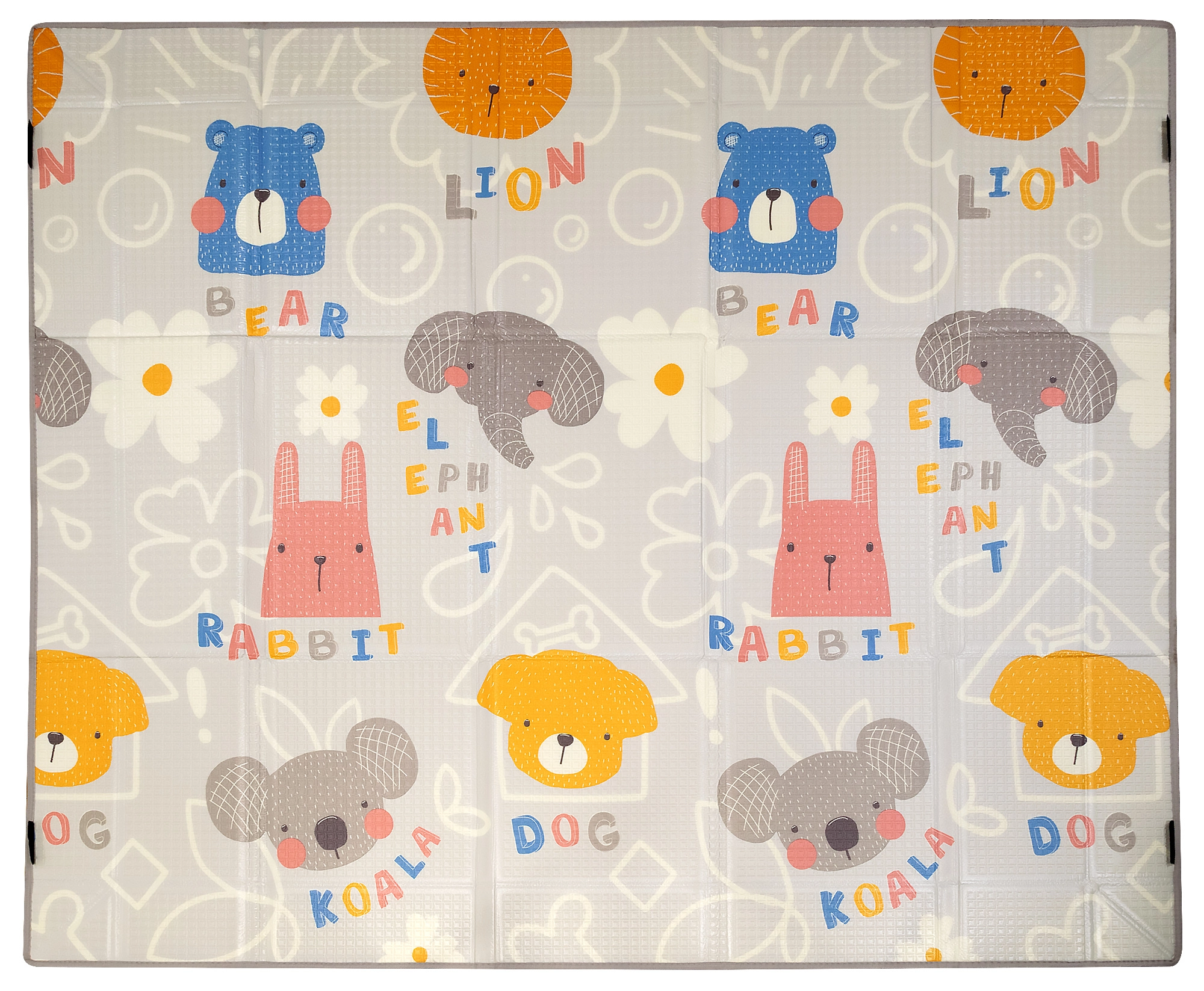 Jedna strana sa životinjama i nazivima na engleskom za poticanje ranog učenja, druga s geometrijskim uzorcima uklapa se u svaki interijer.