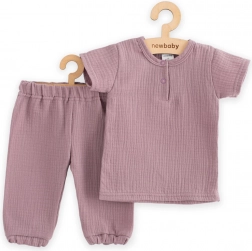 Ovaj stilski 2-dijelni muslin komplet New Baby donosi sve što je novorođenčetu potrebno za udobnost tijekom toplih dana. Majica s kratkim rukavima od ugodne i prozračne muslin pamuka zakopčava se na drukere kod ovratnika za lako presvlačenje. Hlače s mekanom gumicom u struku i na nogavicama nigdje ne stežu i odlično stoje.