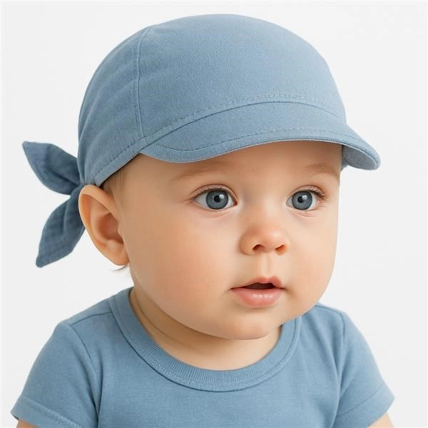 Lagana ljetna muslinska maramica sa štitnikom New Baby štiti dječju glavicu od sunca i pruža sjenu za oči. Zahvaljujući čvorovima ima podesivu veličinu, izrađena je od 100% pamuka, prozračna, nježna prema koži i s certifikatom OEKO-TEX STANDARD 100.