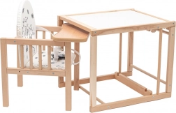 Jednostavna pretvorba iz visoke hranilice u samostalan stolić i stolicu za igru, crtanje i samostalno hranjenje.