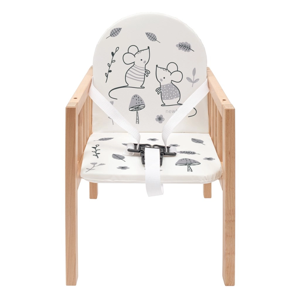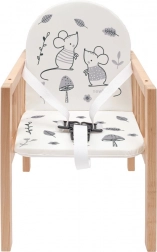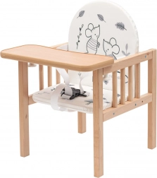 Praktična i sigurna dječja hranilica 2u1 NEW BABY Jerry od čvrstog bukovog drva. Nudi mogućnost pretvaranja u samostalan stolić i stolicu, ima udobno podstavljeno sjedalo s dječjim motivima i lako perivu plohu/tacnu. O sigurnosti brinu 3-točkasti sigurnosni pojasevi i stabilna konstrukcija s dugim vijekom trajanja. Idealna za hranjenje, igru i crtanje.