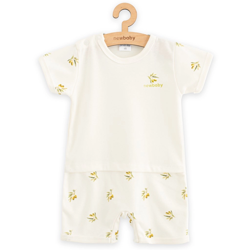 Lagan i udoban ljetni bodi s kratkim rukavima New Baby s motivom maslina izrađen je od 100% organskog pamuka. Zahvaljujući preklopnom kopčanju sa strane i drukerima između nogu lako se oblači i presvlači. Nježne gumice na nogavicama ne stišću i osiguravaju udobnost i za osjetljivu kožu. Certifikacija OEKO-TEX STANDARD 100 jamči sigurnost materijala.