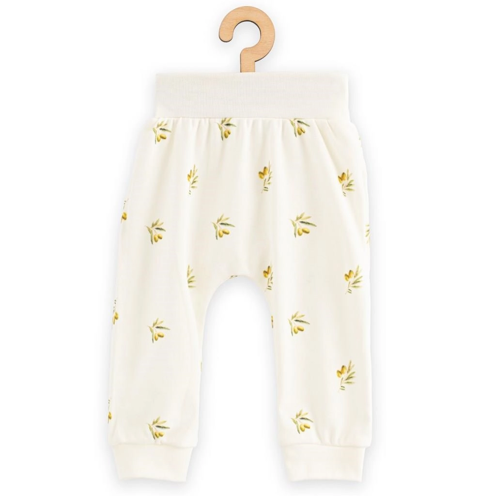 Mekane i udobne dječje hlače od organskog pamuka NEW BABY s cjeloplošnim uzorkom maslina idealne su za svakodnevno nošenje. Širi pojas u struku i na nogavicama osigurava da hlače dobro stoje i ne stišću. Zahvaljujući mekanom, prozračnom i kvalitetnom materijalu beba će se osjećati sjajno cijeli dan.