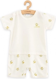 Lagan i udoban dječji overal New Baby Masline od 100% organskog pamuka s kratkim rukavima i preklopnim (zavinjujućim) krojem. Cjeloplošni uzorak maslina, lako oblačenje s drukerima između nogica i sa strane na vezice, mekane gumice na nogavicama ne stežu. Certifikat OEKO-TEX STANDARD 100 – sigurno i za osjetljivu kožu.