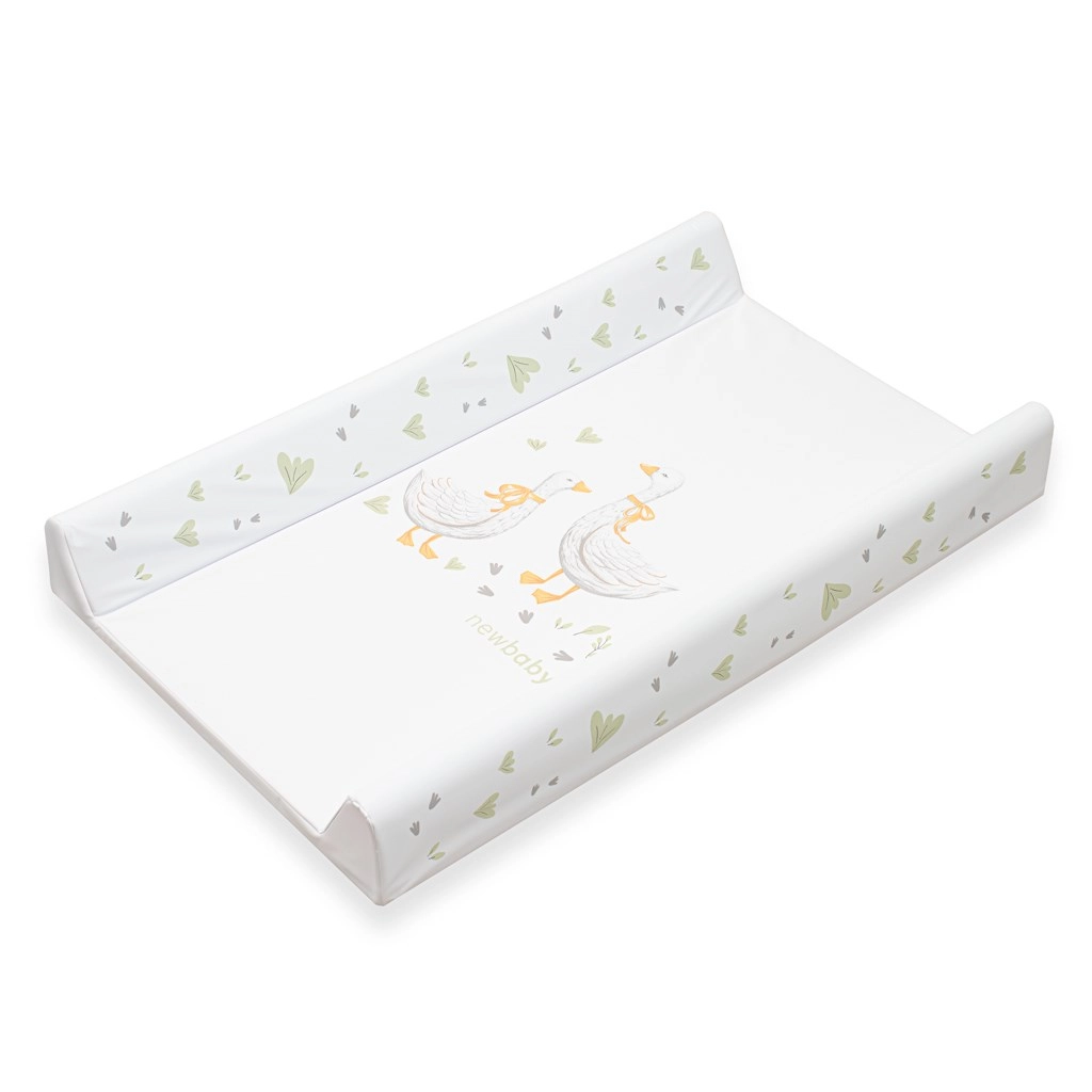 Praktična podloga za prematanje NEW BABY Gusi nudi mekano podstavljanje, povišene bočne rubove za veću sigurnost i lako se čisti površinu. Sladak uzorak s guskama zainteresirat će bebicu, a kvalitetan nepropustan materijal nježan prema koži osigurava udobno i higijensko prematanje kod kuće i na komodi.