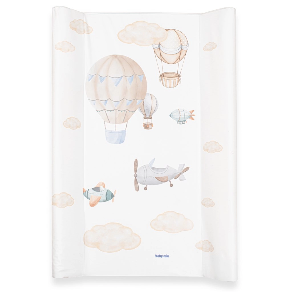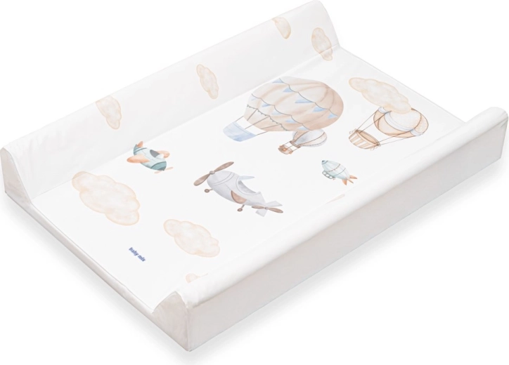 Površina podloge presvučena je izdržljivom folijom bez ftalata, koja je higijenska, lako se briše i brzo se suši. Nježni motivi balona i zrakoplova lijepo će upotpuniti svaku dječju sobu i spojiti praktičnu uporabu s ugodnim izgledom.