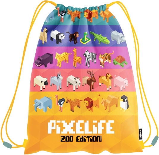 Praktična i lagana vrećica s motivom Pixel Zoo dimenzija 39 × 33 cm idealna je za aktivnosti, vrtić ili izlete. Nudi jednostavno zatvaranje pomoću vezica, izdržljiva je i pogodna za djecu od 3 godine. Sjajan izbor za nošenje papuča, sportske opreme ili sitnica na put.