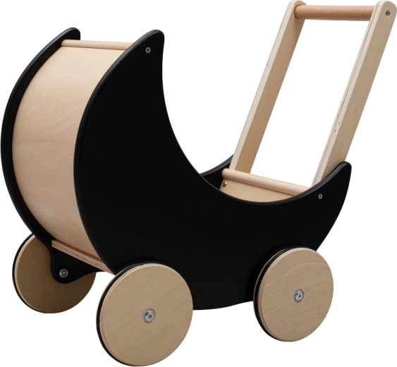 Stilska drvena kolica i guralica 2u1 Montessori BABY MIX u elegantnoj crnoj boji podržavaju prve korake i razvoj motorike. Nude stabilnu potporu pri hodu, dovoljno prostora za igru i sigurnu izradu sa zaobljenim rubovima. Idealno za male istraživače od 12 mjeseci.