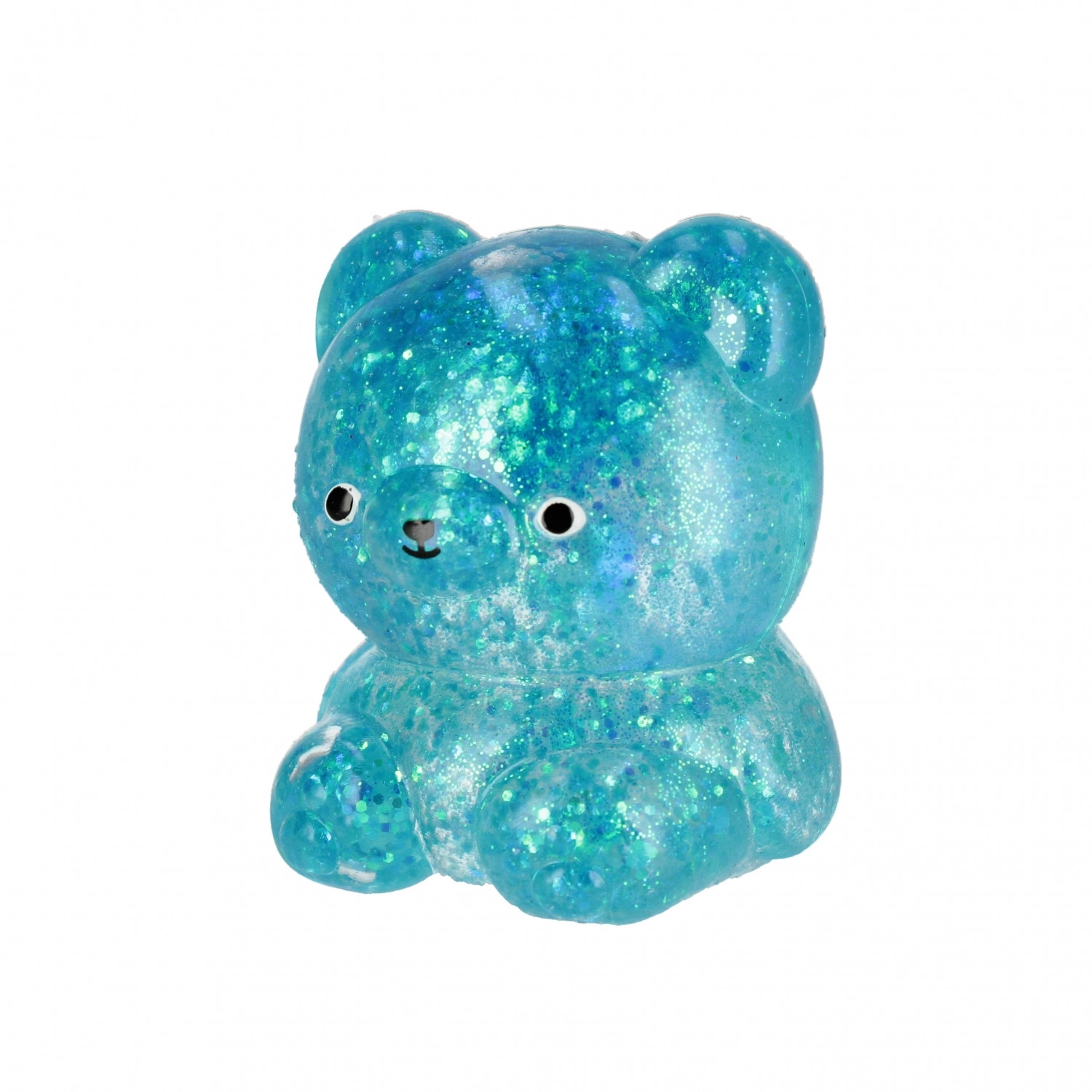 Translucentan medvjedić s plavo-tirkiznim gliterima donosi vizualnu relaksaciju i izvrstan taktilni doživljaj.