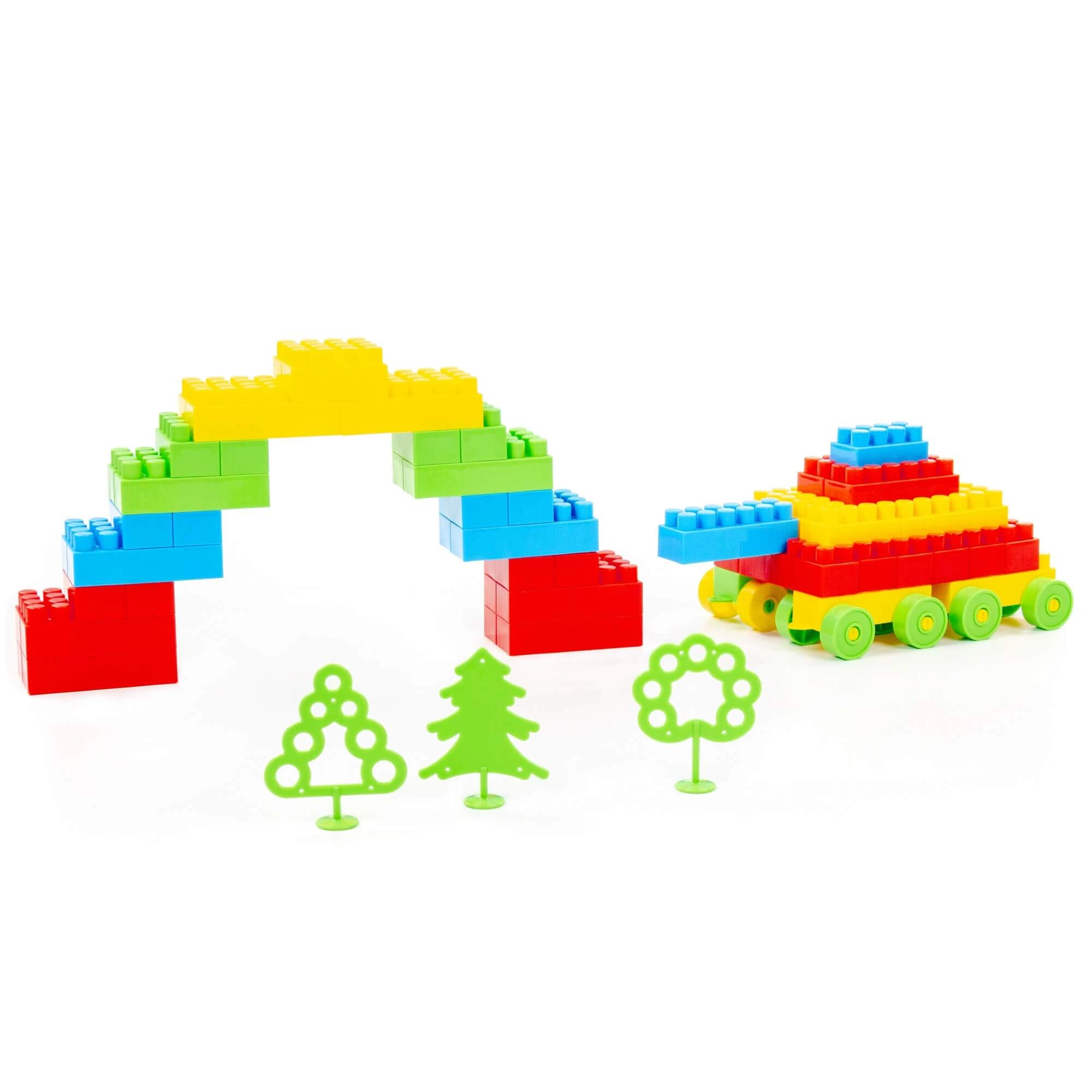 Povezni sustav omogućuje gradnju lukova, vozila i drugih konstrukcija. Žive boje i glatko spajanje potiču na dugu i zabavnu igru.