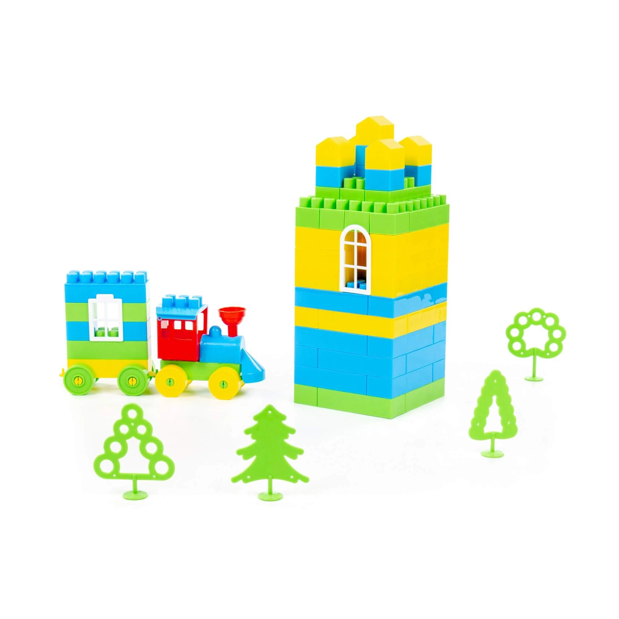 Sagradite impresivan toranj i mali vlakić s vagončićem. Zeleni dodaci pomažu u stvaranju vlastitih priča i okruženja.