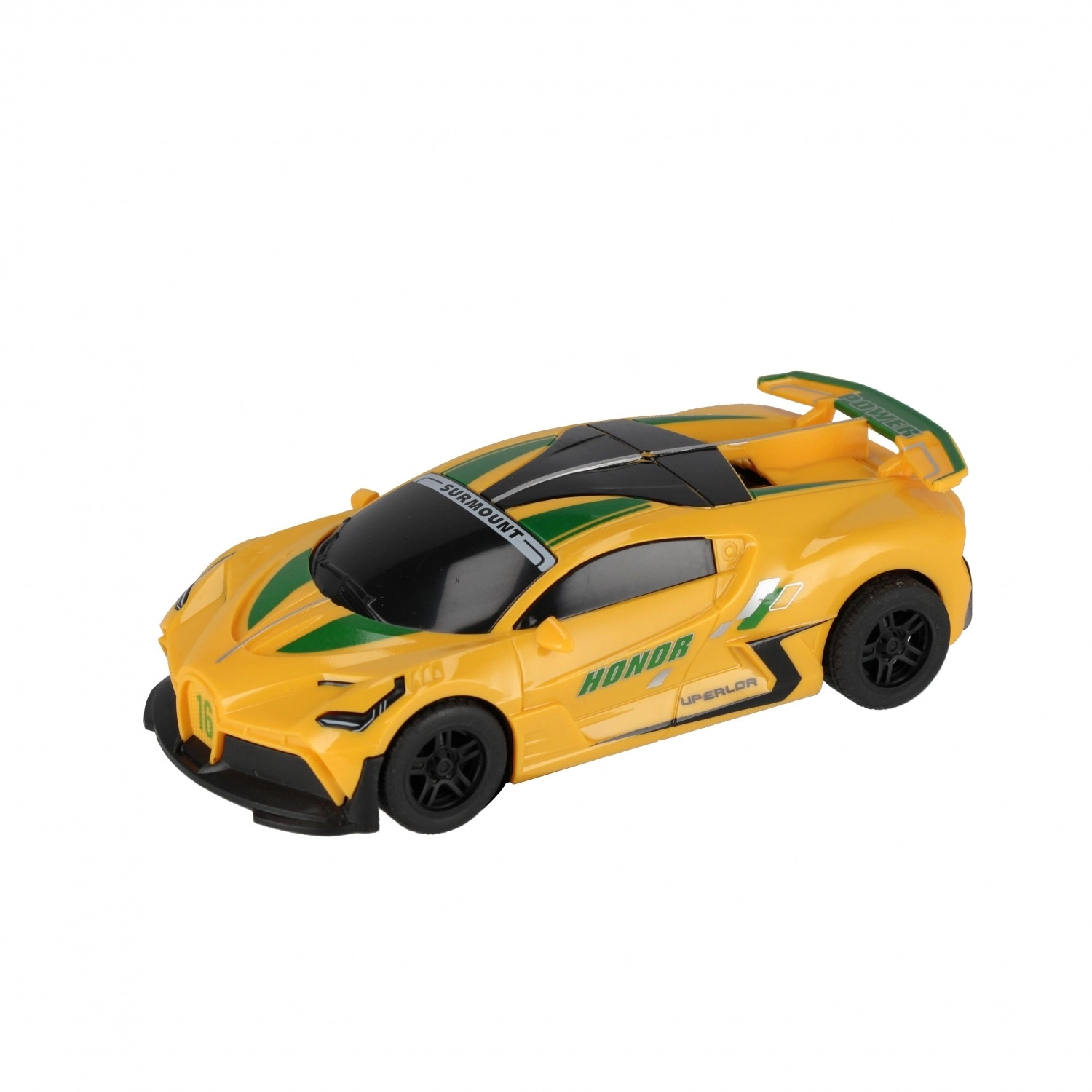 Brz i zabavan trkaći automobil s pull-back funkcijom za dinamičnu vožnju bez baterija. Zahvaljujući dodatnom kotaču za drift izvodi efektnе proklize, što pojačava akcijski doživljaj igre. Idealan za djecu od 3 godine, dostupan u tri boje (crna, plava, žuta).