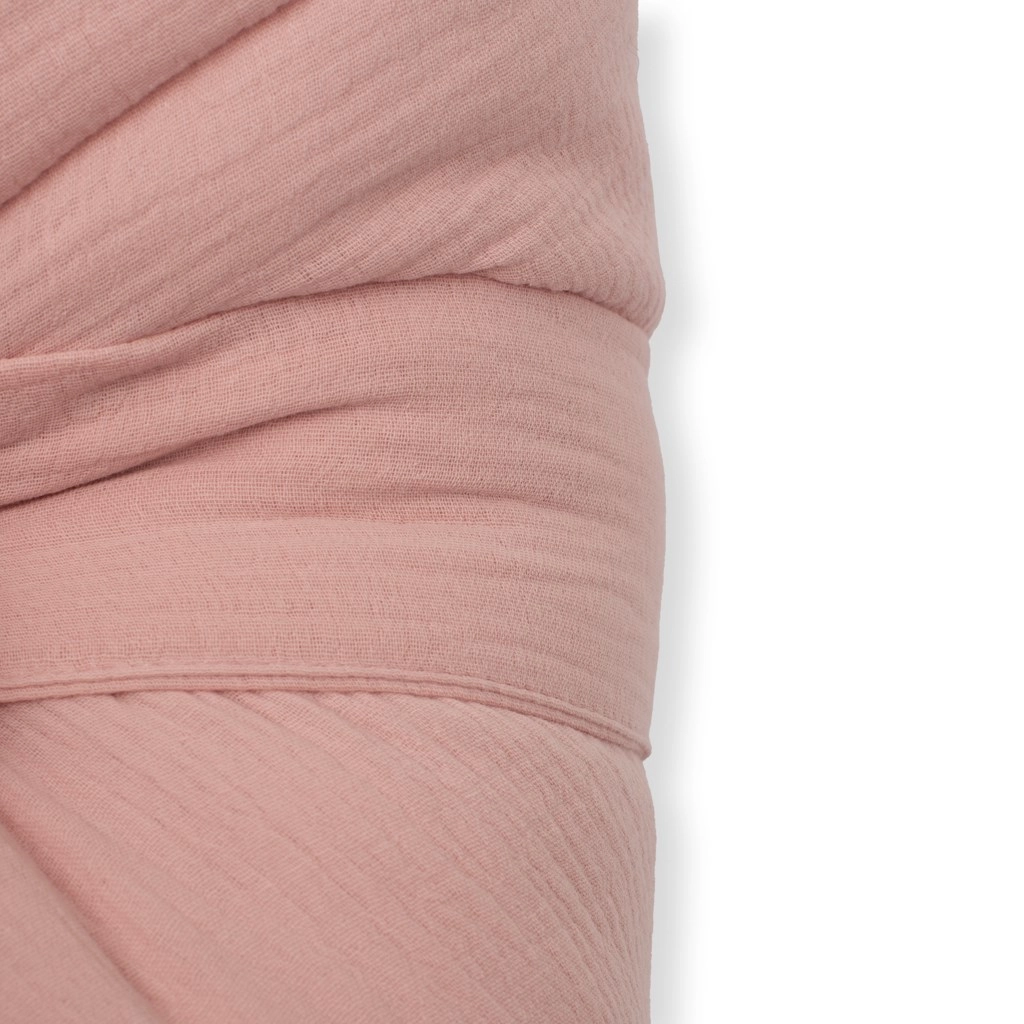 Muselin spada među najnježnije, a ujedno i najpraktičnije tkanine za djecu. Njegova prozračna struktura osigurava odličnu cirkulaciju zraka i pomaže spriječiti pregrijavanje. Što se više pere, to je još mekši i ugodniji na dodir. Povijalica New Baby tako pruža bebi ugodno okruženje slično majčinoj utrobi i doprinosi mirnijem uspavljivanju.