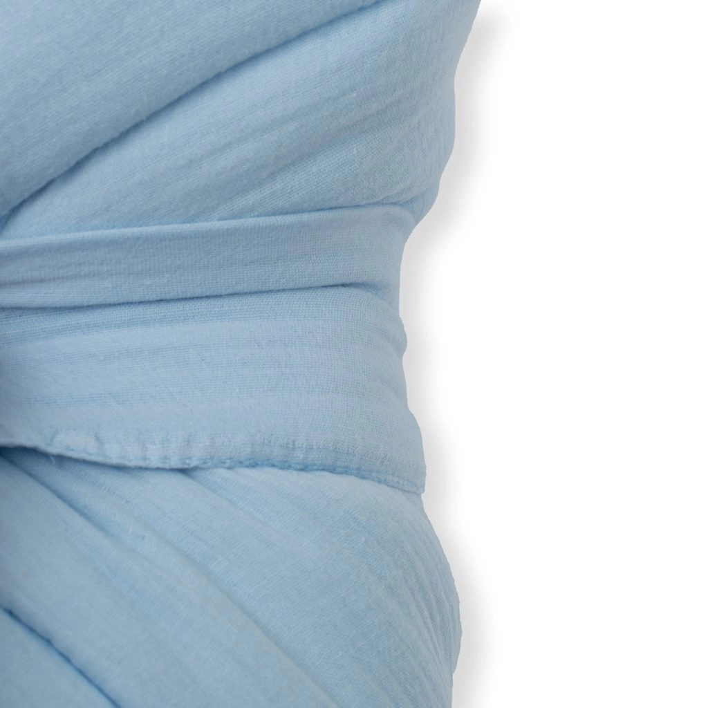 Muselin spada među najčišće i najnježnije tkanine. Njegova lagana struktura omogućuje optimalnu cirkulaciju zraka, pa beba ostaje na toplom, a pritom bez nepotrebnog pregrijavanja. Povijalica je idealna za mirno spavanje, dojenje i za kolica.