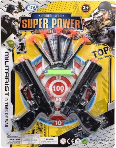 Ovaj dječji set s pištoljima i metom donosi puno zabave pri ciljanju i treniranju preciznosti. Zahvaljujući mecima s vakuumskim čepovima, igra je sigurna za djecu i prikladna za kućnu i vanjsku upotrebu. Kompaktni pištolji dimenzija 12 × 8 cm udobno leže i manjim rukama.