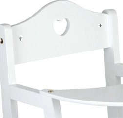 Ova drvena hranilica za lutke u čistoj bijeloj boji stilski je dodatak dječjoj sobi i dnevnom boravku. Suptilan izrez srca na naslonu daje sladak izgled, dok čvrsta konstrukcija osigurava sigurnu i dugotrajnu zabavu.
