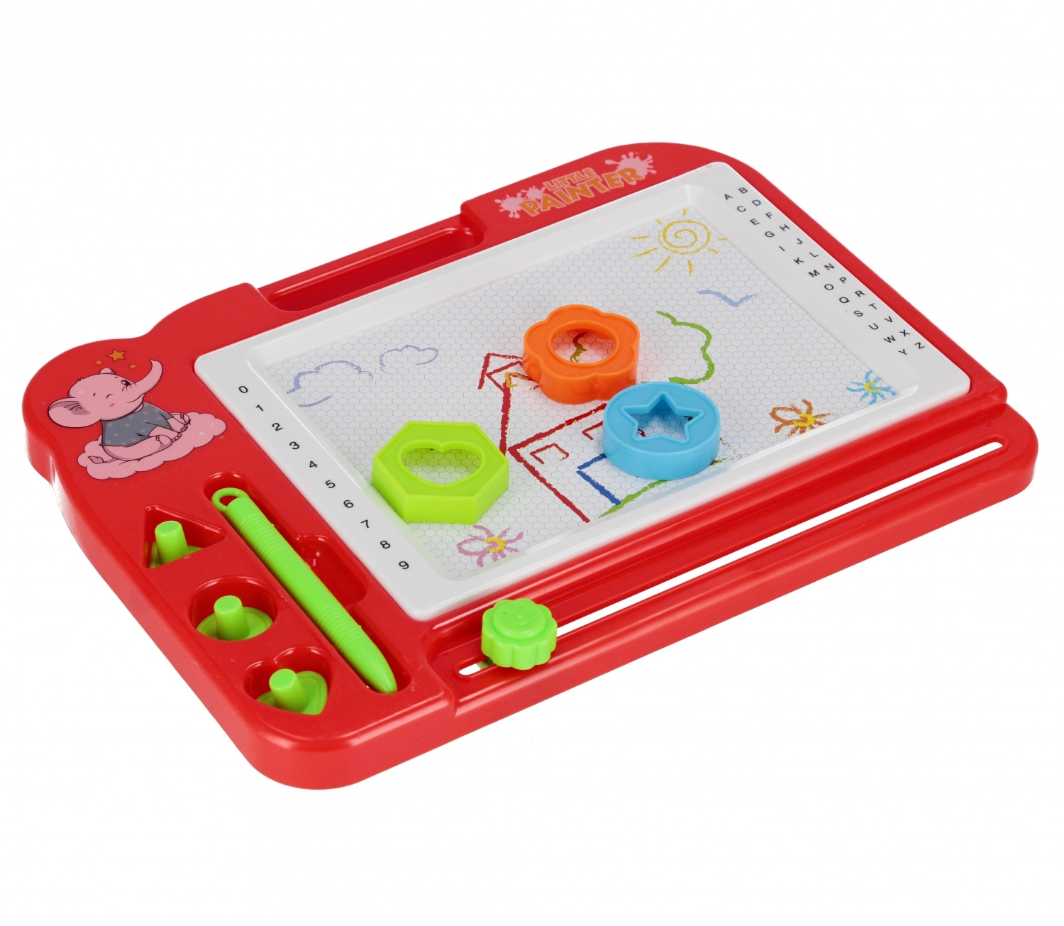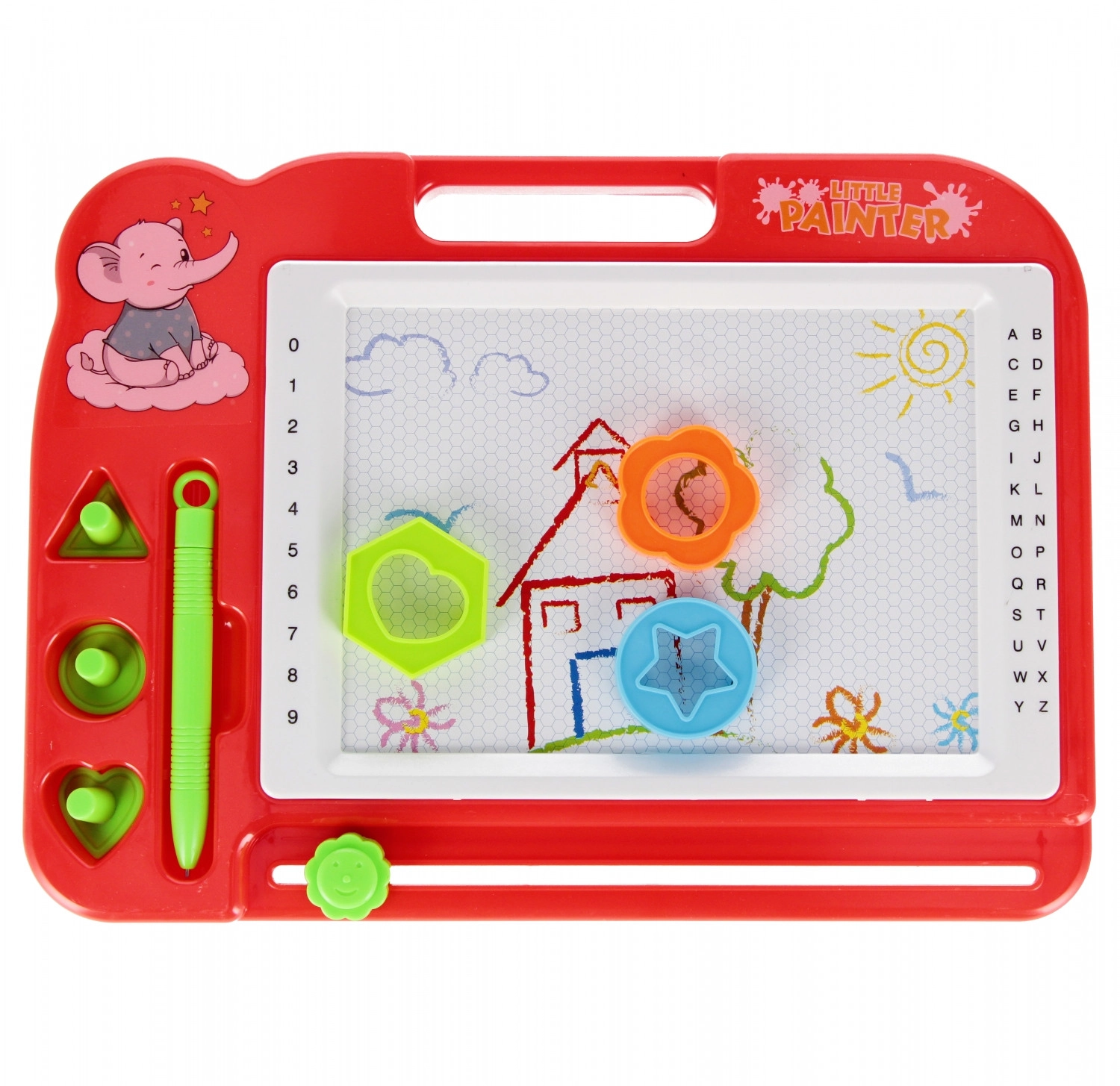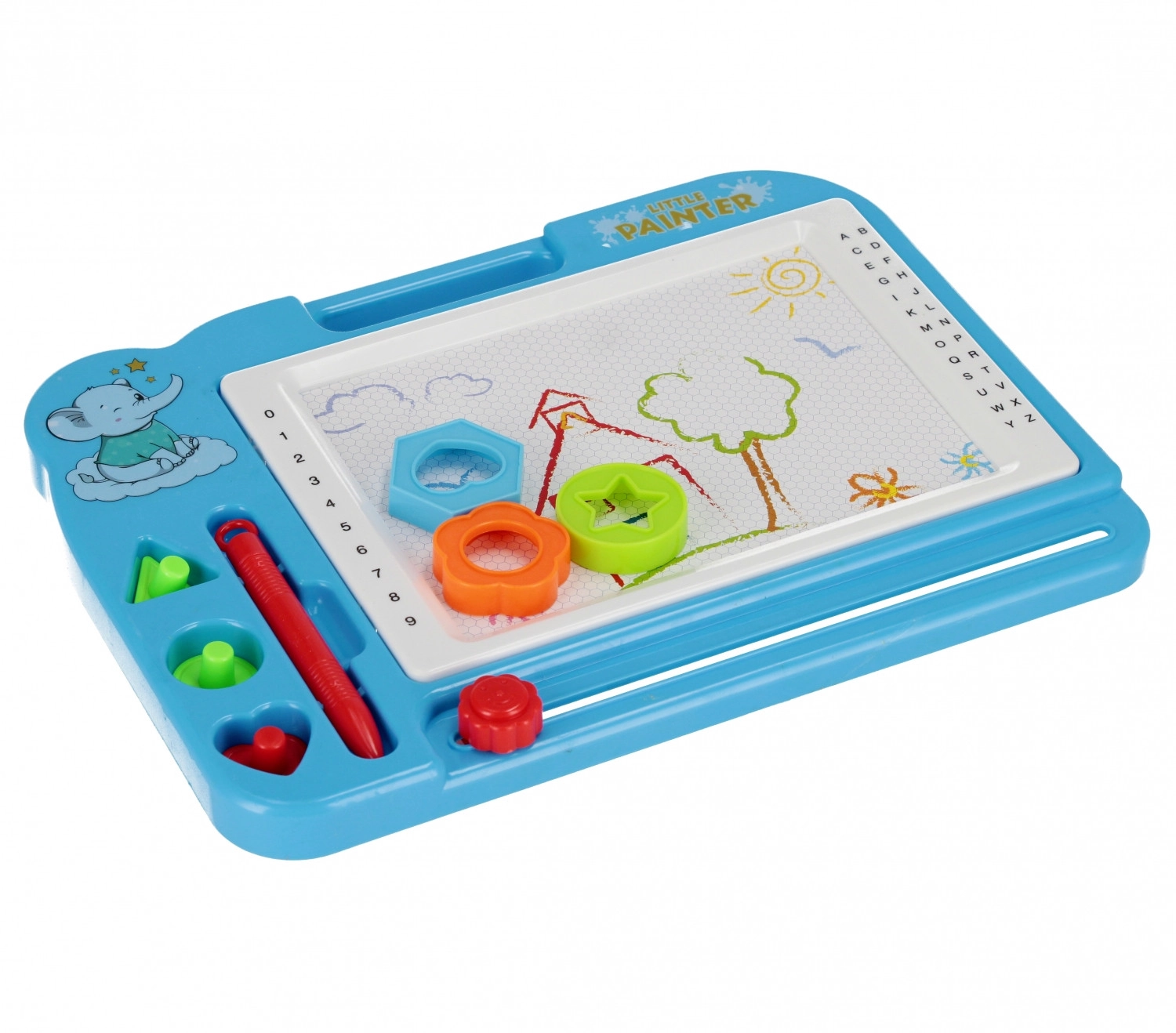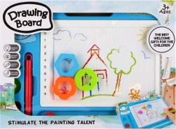 Ova magična ploča za crtanje nudi jednostavan i čist način da djeca izraze svoju maštu. Uz pomoć magnetske olovke i žigova u oblicima djeca crtaju po bijeloj površini, a jednim potezom klizača-gumice sve lako obrišu. Ploča je lagana, izdržljiva i odlično leži u ruci zahvaljujući praktičnoj ručki.