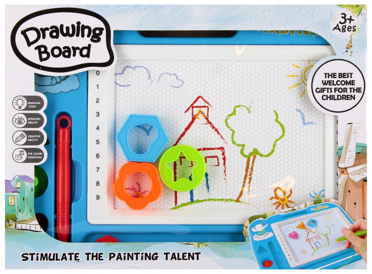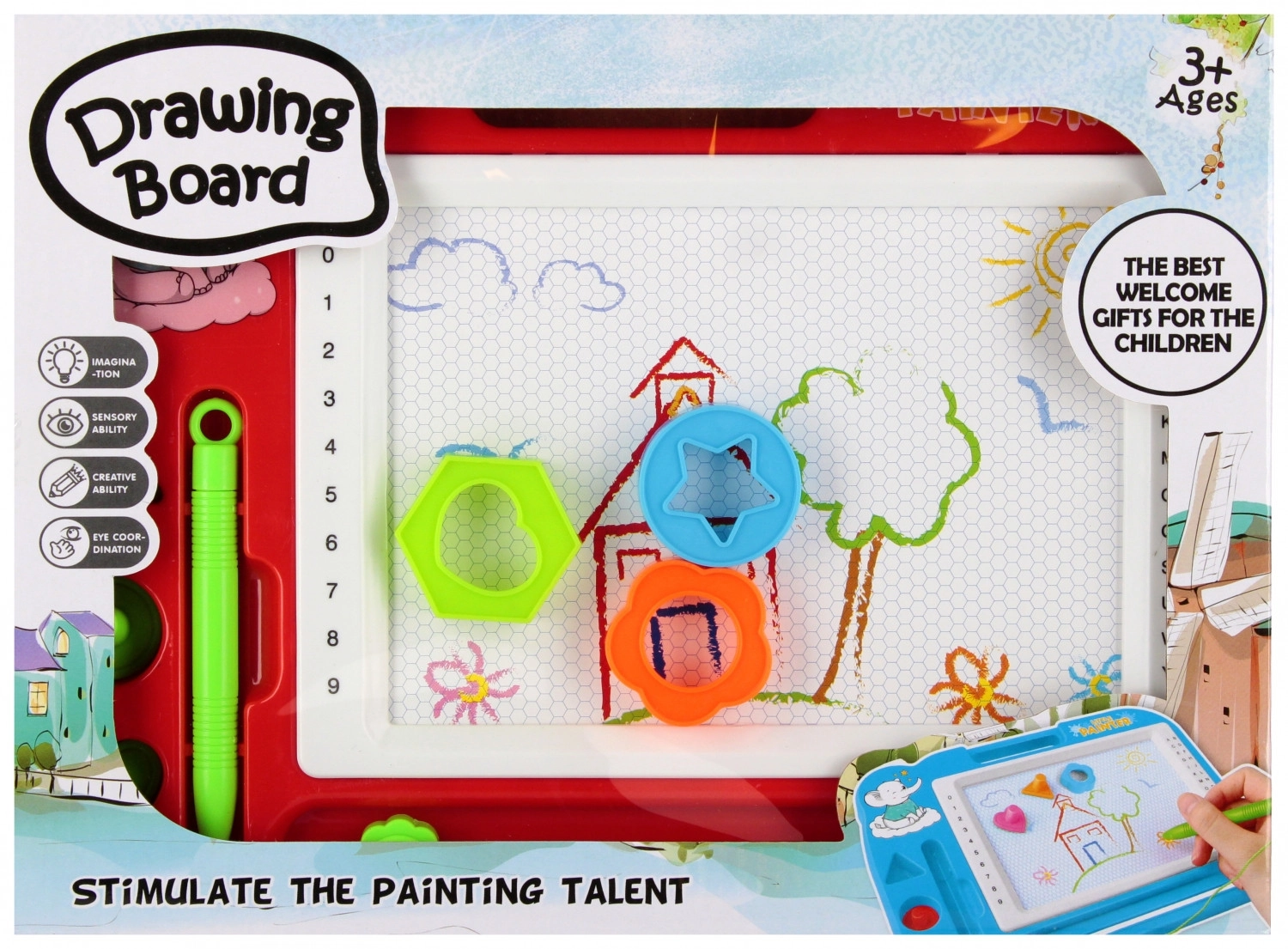 Otkrijte zabavno crtanje bez nereda s ovom magnetskom pločom za crtanje za djecu. Zahvaljujući ponovljivom brisanju djeca mogu stvarati iznova i iznova, bez potrebe za papirom. Lagan i prenosiv dizajn idealan je za putovanja, dok olovka i žigi razvijaju finu motoriku i kreativnost. Prikladno za djecu od 3 godine.