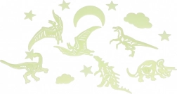 Pretvorite dječju sobu u čarobni svijet dinosaura. Svjetleće naljepnice lako se pričvršćuju na glatke površine, a nakon izlaganja svjetlu u mraku ugodno svijetle. Idealne su kao dekoracija iznad kreveta, radnog stola ili na vratima.