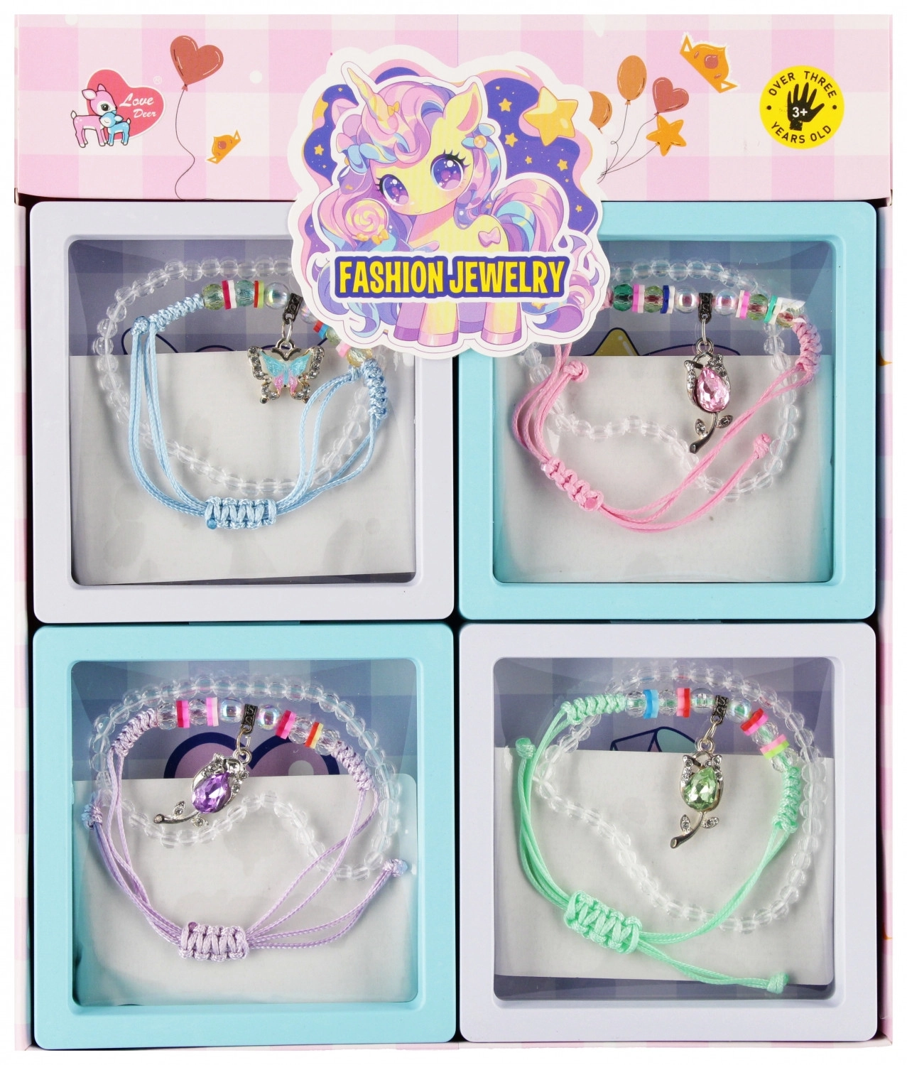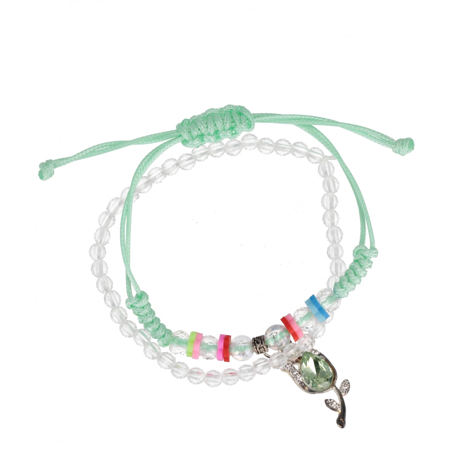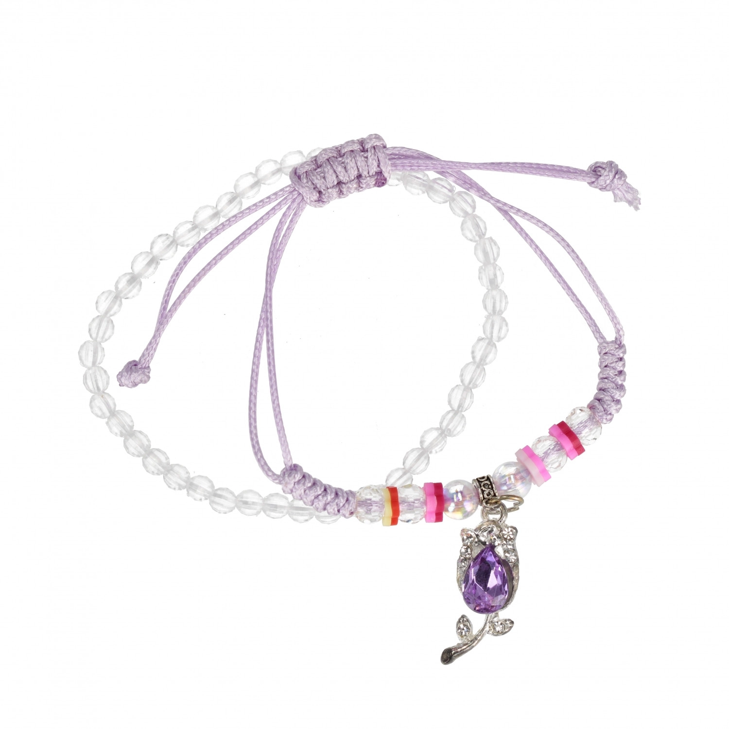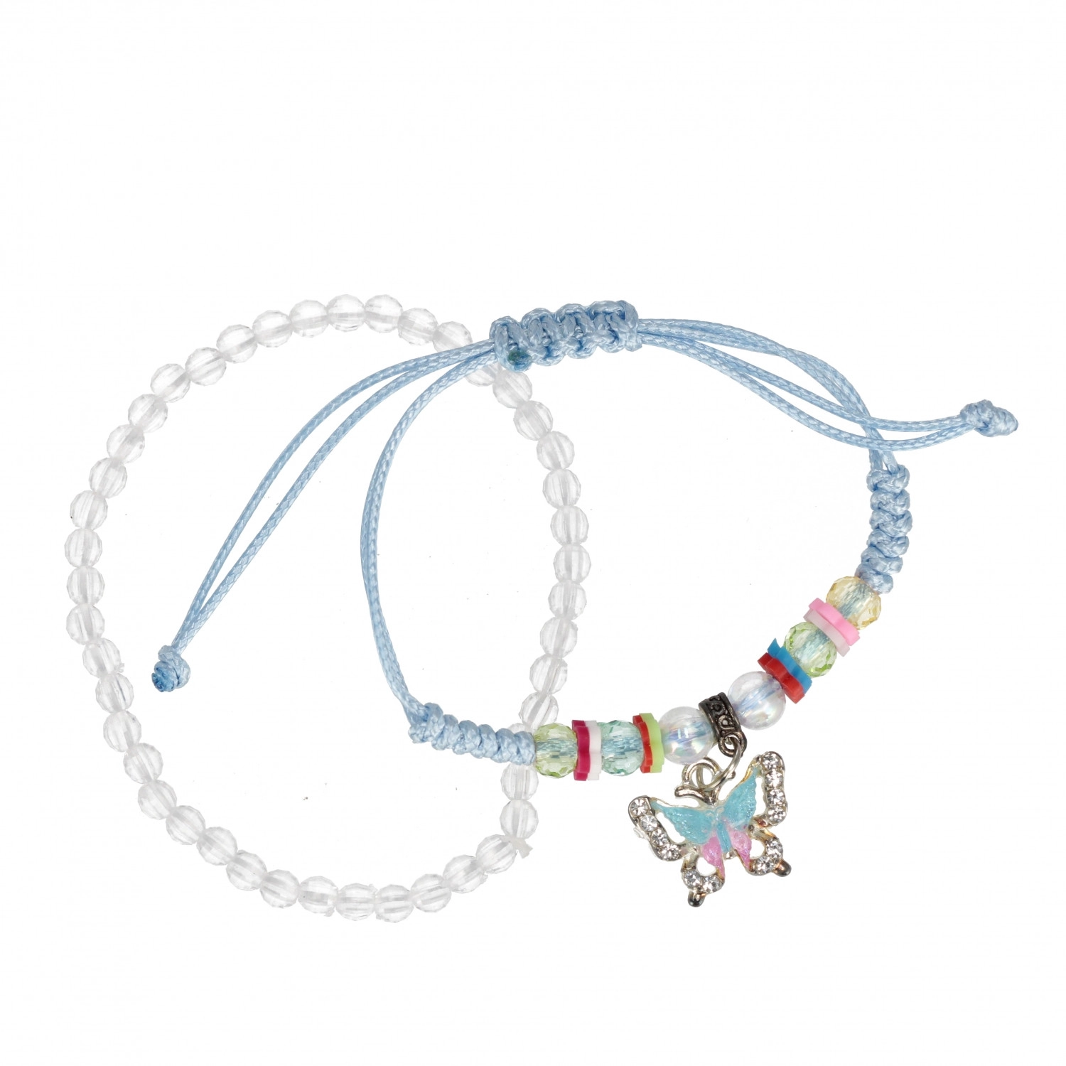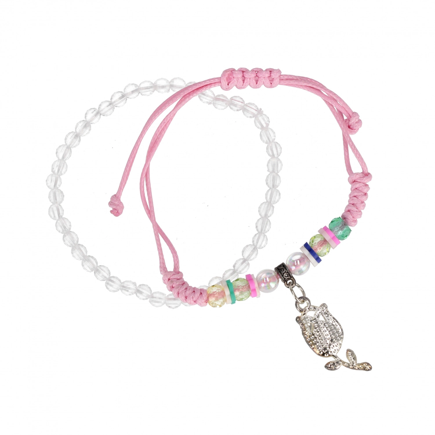 Otkrijte razigranu narukvicu s privjeskom koja će razveseliti svako dijete. Prozirne perlice, šareni razdjelnici i sitni metalni privjesci stvaraju veseo i šarolik dodatak za svakodnevno nošenje i posebne prigode. Zahvaljujući podesivom kliznom čvoru narukvicu lako prilagodite zapešću.