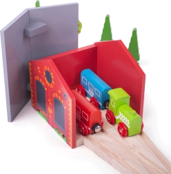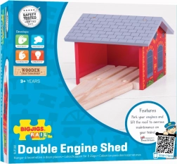Praktična drvena remiza za dva vlakića idealan je dodatak svakoj drvenoj željezničkoj pruzi. Kompaktno izvedenje s ulaznom tračnicom omogućuje lako parkiranje do dviju kompozicija, održavanje reda i širenje mogućnosti igre. Izrađeno od kvalitetnog drva koje zadovoljava europske sigurnosne norme i potiče dječju maštu i vještine. Kompatibilno s većinom drvenih željezničkih setova, izdržljiva izrada i laka integracija u kolosijek.