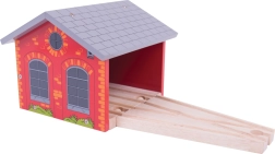 Proširite svoju prugu stilskom ciglenom remizom u koju možete udobno parkirati do dva vlakića. Zahvaljujući priloženoj ulaznoj tračnici remizu ćete jednostavno povezati s postojećom prugom i stvoriti realistično zaleđe za odmor, održavanje ili točenje goriva kompozicija. Robusna drvena konstrukcija i bezvremenski dizajn jamče dugotrajan vijek i sigurnu igru.