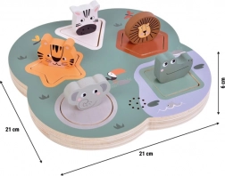 Priuštite djeci pametnu igračku koja spaja igru, zvukove i boje. Drvene 3D SAFARI puzzle sa životinjama potiču istraživanje – nakon podizanja svakog dijela začut će se autentičan zvuk životinje, što potiče percepciju, logičko razmišljanje i prve riječi kroz oponašanje. Dijelovi imaju zaobljene oblike i udobni su za malu dječju ruku.
