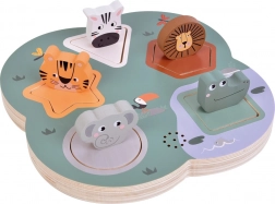 Otkrijte zabavno učenje s ovim drvenim 3D SAFARI puzzlama koje pri podizanju dijelova proizvode realistične zvukove životinja. Pet simpatičnih životinja – lav, tigar, slon, zebra i krokodil – pomaže djeci razvijati finu motoriku, koordinaciju ruka–oko i prepoznavanje oblika i životinja. Izrađeno od 100% FSC certificiranog drva, sigurno za male ručice. Baterije 2× AAA nisu uključene u pakiranje.