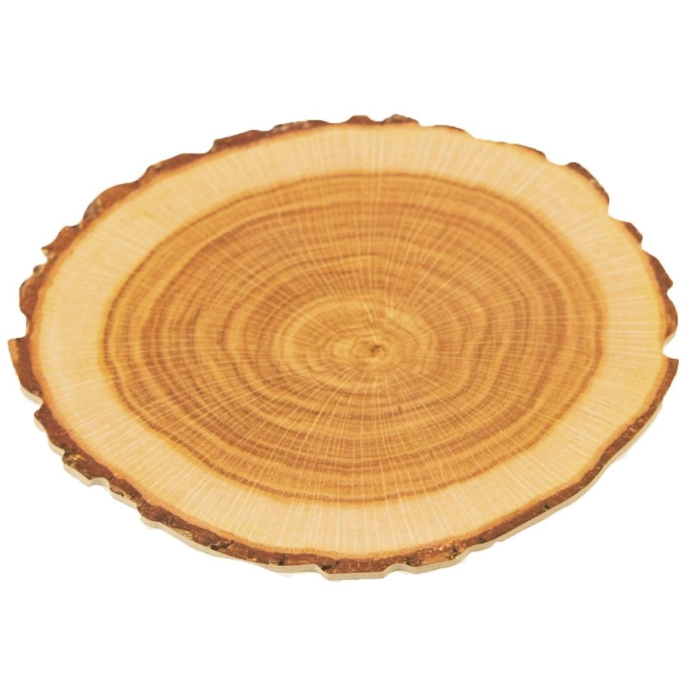 • Prirodni izgled: realističan motiv drvenog reza s „korom” po rubu.