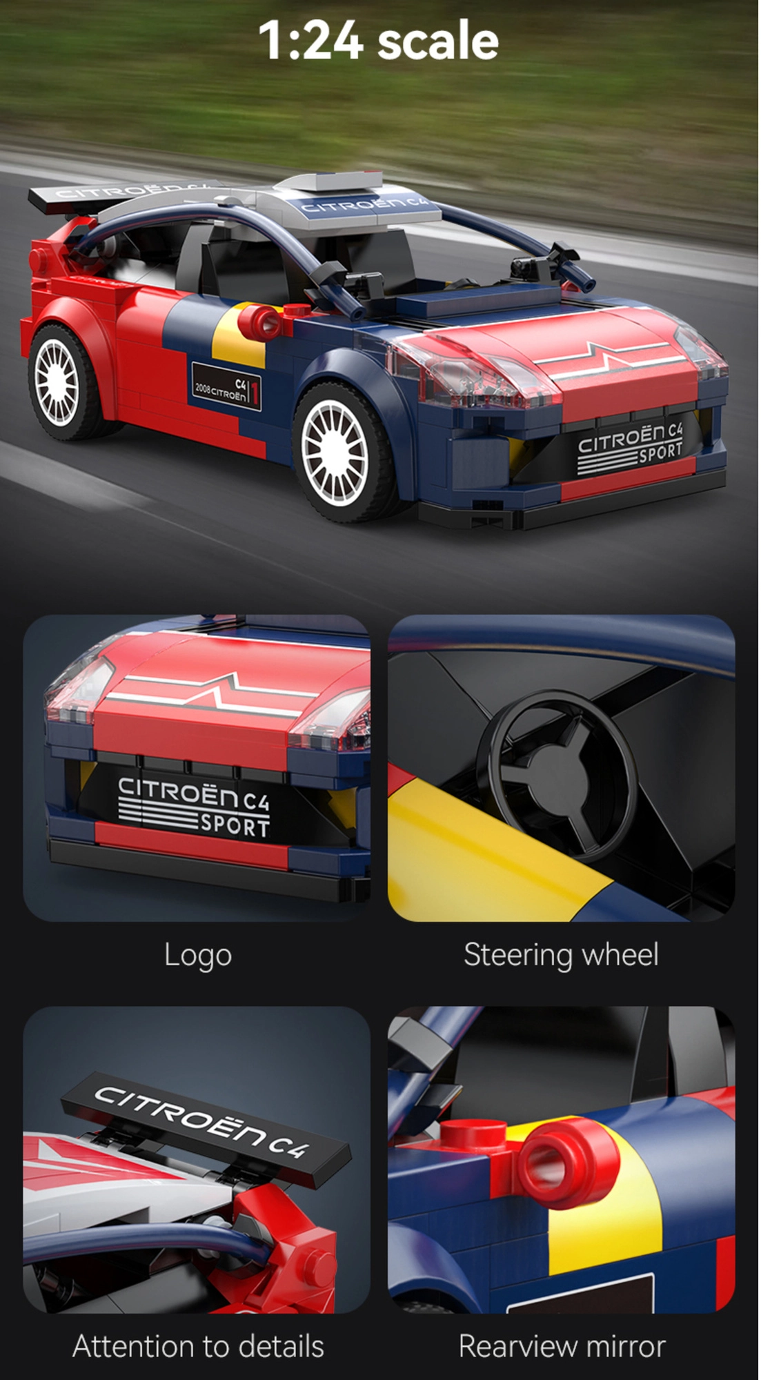 Sastavite kultni reli automobil CITROËN C4 WRC u mjerilu 1:24 iz CaDA seta s 296 dijelova. Model oduševljava bogatim realističnim detaljima, glatkim kretanjem na 4 kotača i atraktivnom plavo‑crvenom karoserijom. Odlično kao poklon, izložbeni primjerak u kolekciji i za zabavno zajedničko sastavljanje.
